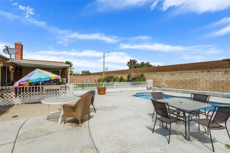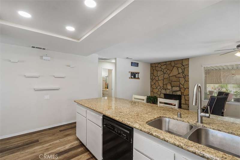 Beautiful POOL Home in a 55+ Senior Living Community! Discover the perfect balance of relaxation and recreation in this inviting senior community home. The expansive backyard is ideal for entertaining, complete with a sparkling newer salt pool only 4 years old, featuring a slide, two covered patios for shade, and low maintenance artificial turf bordered by a block wall for privacy. Inside, the layout is designed with gatherings in mind, and INTERIOR FRESHLY PAINTED! A formal dining room and living room with neutral-toned laminate flooring set the stage for entertaining, while the cozy family room with a brick fireplace creates a warm retreat. The kitchen offers plenty of counter space with granite counter tops, a roomy breakfast bar, and stainless steel appliances. The primary bedroom provides peaceful views of the landscaped yard, mirrored closet doors, and plenty of natural light. The secondary bedroom is generously sized and conveniently located near the guest bath. With a newer roof, HVAC system only 2 years old, and excellent curb appeal, this home is move-in ready. Residents enjoy easy access to freeways, shopping, dining, and local churches, as well as community amenities including pickleball, fitness rooms, senior activities, and an association pool.