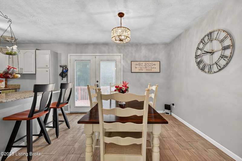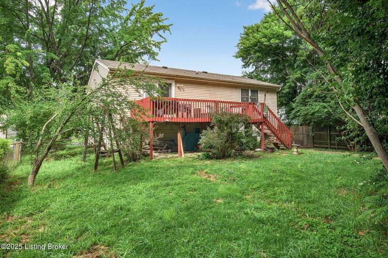 Welcome to 5215 Baywood Dr, nestled just inside the Oldham County line in the desirable Willow Creek neighborhood. This well-maintained bi-level home offers the perfect blend of space, charm, and function—with access to Oldham County schools and a price point that's hard to beat. Step inside to an open-concept main level featuring a spacious living room, dining area, and kitchen with direct access to the backyard deck—perfect for everyday living and easy entertaining. Down the hall, you'll find three comfort-sized bedrooms and a full bath that round out the upper floor. Downstairs is where this home truly shines. A large family room with exposed brick and soaring ceilings creates a cozy-yet-stylish space ideal for movie nights, game days, or hosting friends. There's even bonus space for your own bourbon lounge, hobby area, or home office--just like the current owners have done. The lower level also features a combined half bath and utility room, plus access to a deep two-car garage with additional storage in the rear. Homes at this price, with this much potential, and access don't hit the market often and they don't last long. Don't miss your opportunity to make 5215 Baywood Dr your next home!