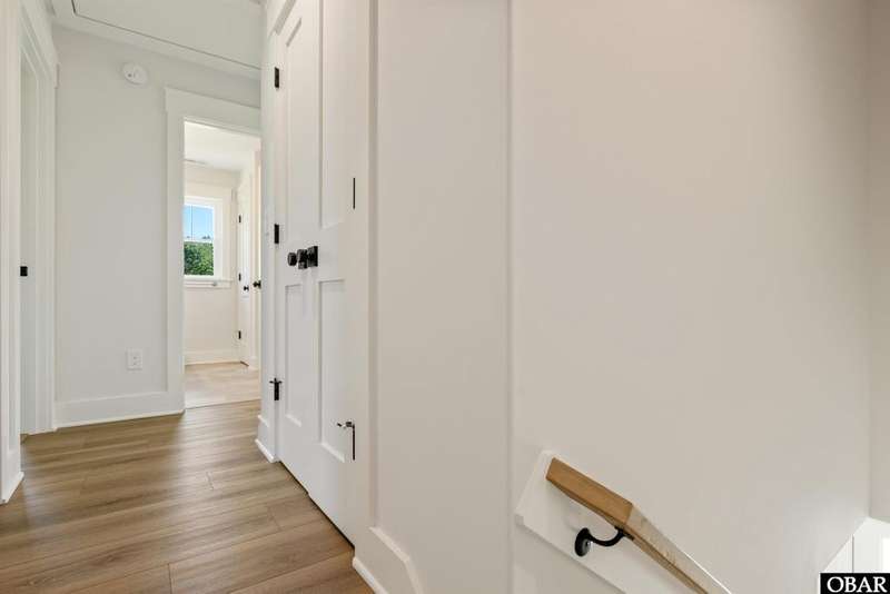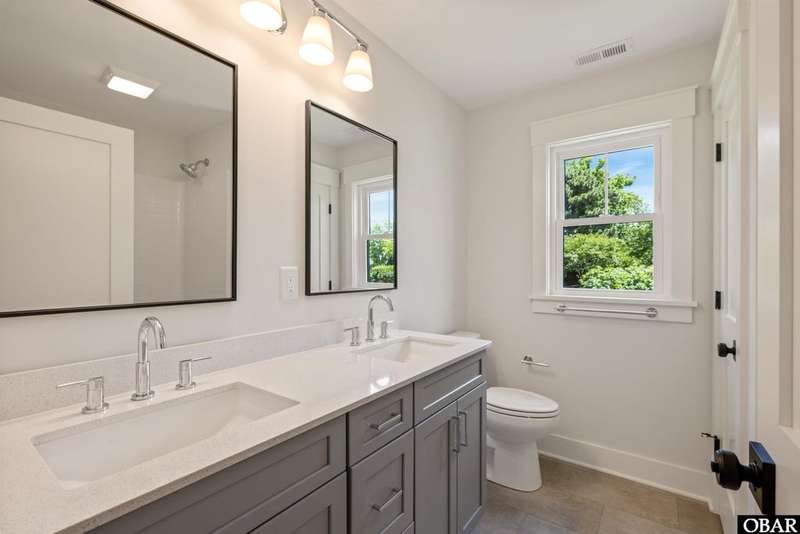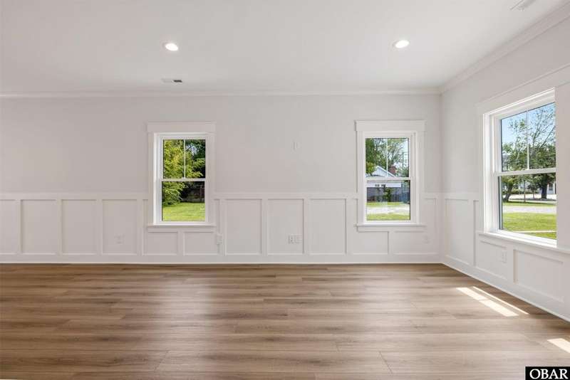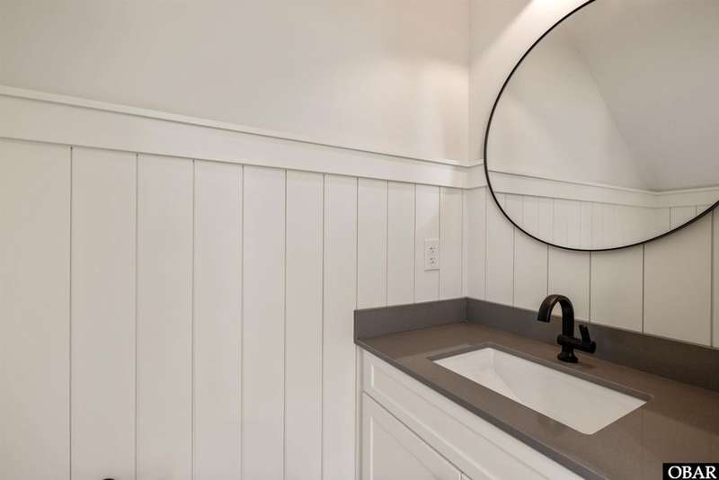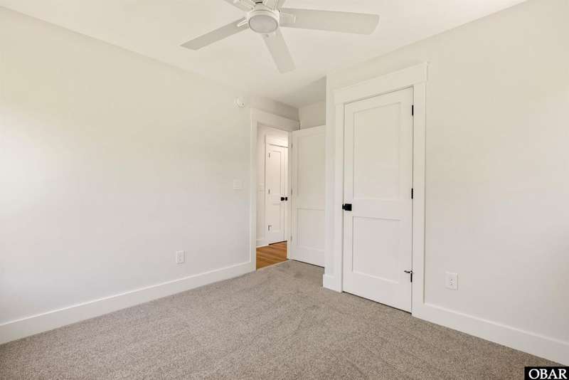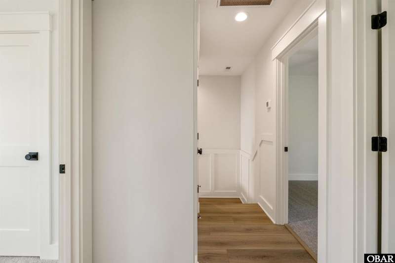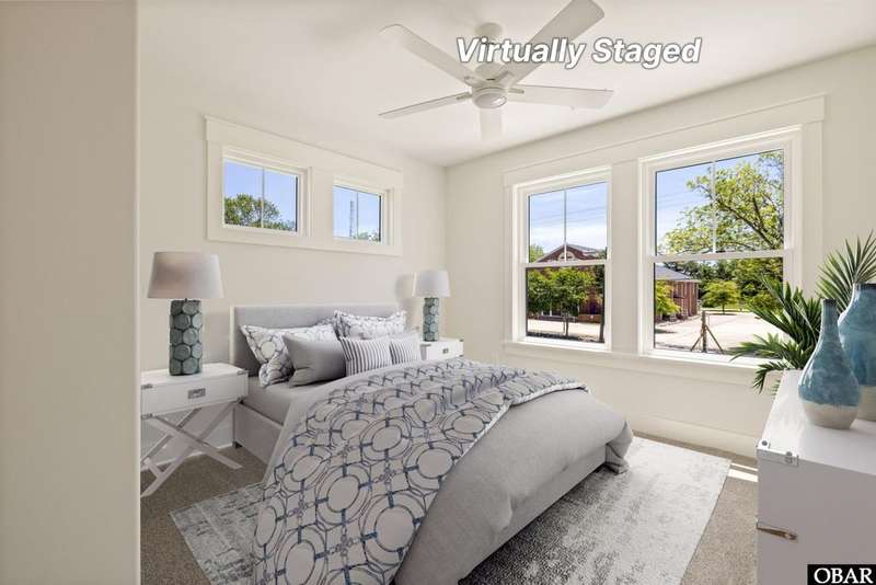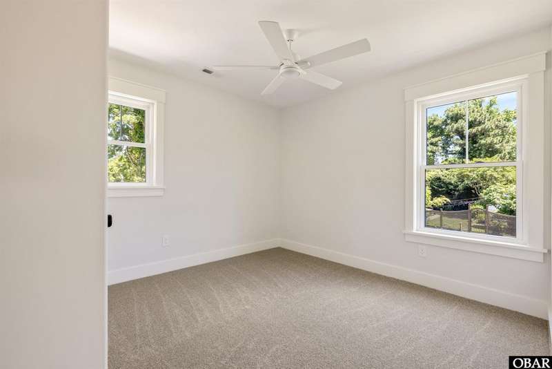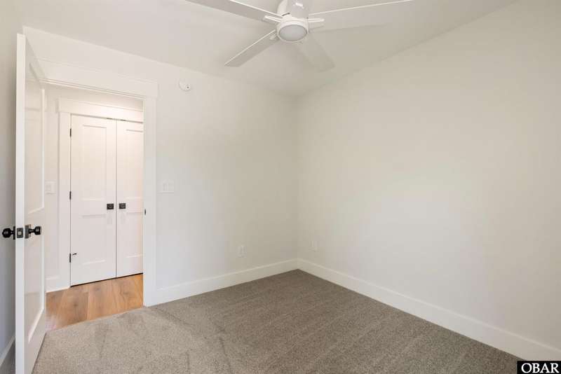 A Barker & Barker Custom Homes new build in a historic island community?this town home affords the best of both worlds to a homeowner looking for a low maintenance lifestyle in Manteo. This end unit boasts three bedrooms and two and a half baths, plus a private back patio space. You'll be welcomed into a spacious living room with stylish LVP flooring and board and batten style wainscoting. A powder room tucked away discreetly is perfect when entertaining guests on the home's main level. An open floor plan leads from the living into the dining room space, adjacent to an upscale kitchen with stainless GE appliances and sparkling quartz countertops. You'll find added character in the kitchen with details like shiplap, pendant lighting, and an elongated subway tile backsplash. There is plenty of storage with ample cabinet space and a double-door pantry. Just off the kitchen, a laundry room with washer, dryer, and a window for natural lighting provides a convenient yet out of sight area for your washing.On the upper level you'll find three serene bedrooms finished in a contemporary, coastal pallet of soft cool greys and whites. The primary bedroom welcomes in beautiful natural lighting and has a large closet and an en suite bathroom with tub and shower. The other two bedrooms share a spacious hall bath with a double vanity sink and a linen closet. Overhead attic space provides for additional storage needs. HOA includes landscaping, water, exterior maintenance, as well as all common area and septic maintenance. This gem is well appointed for a relaxing lifestyle on beautiful Roanoke Island. Just a fifteen minute drive from the pristine beaches, yet tucked away in quiet, charming Manteo. The town is rich with historic landmarks and attractions, and its downtown waterfront with shops, restaurants, green spaces, and a marina is something out of a storybook.