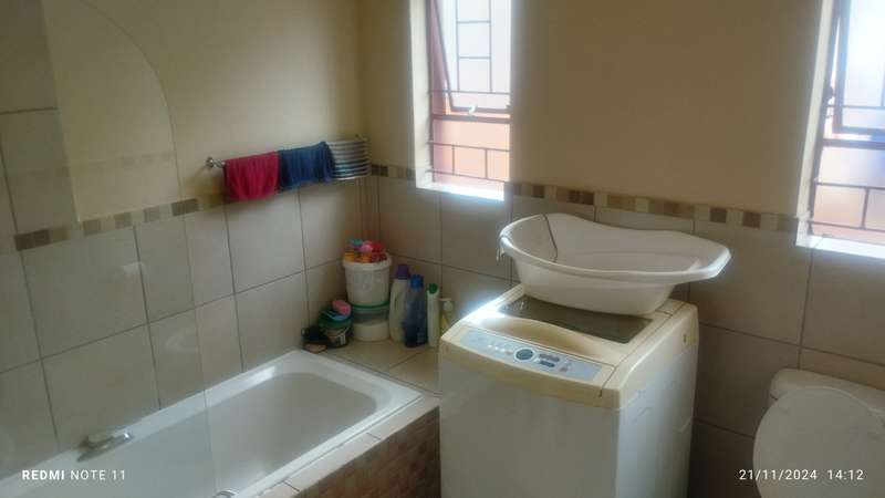 This property is welcoming, it boasts 3 massive bedrooms, open plan kitchen, lockup garage, Carport. When entering this property, you are welcome to a lounge / TV area, dining area, breakfast nook. The open plan kitchen has modern cupboards, enough space for appliances. There is a full bathroom that services the 2 common bedrooms. The master bedroom is ensuite with a shower. This property has a lockup garage and a Carport for once convenience. There is a clubhouse in the estate with a swimming pool, walking trail for morning/evening walks, jogging. The estate is close to all amenities, schools, shopping centers, medical centers The list goes on and on, seeing is believing. Please book sometime to see this property before its too late