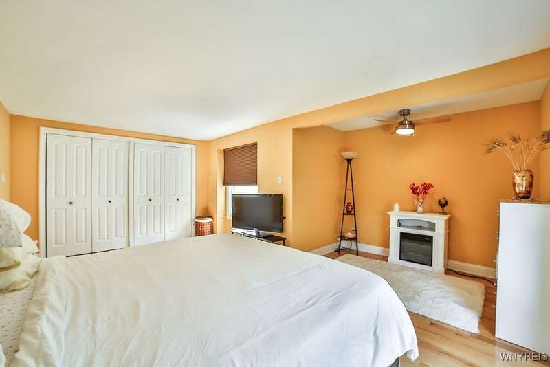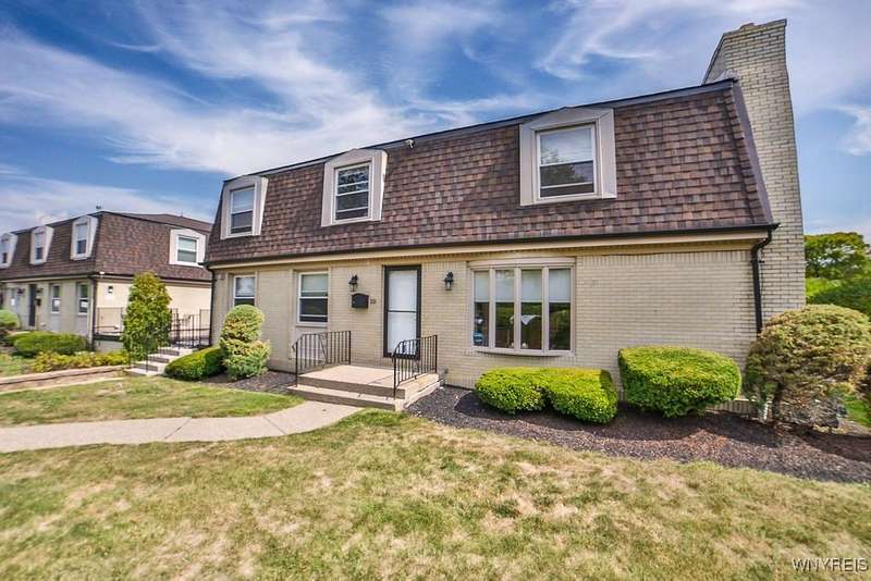 This gem of a property offers a rare opportunity to buy a front facing unit that offers a PRIVATE front and basement entrance for the owners UNLIKE other units in the complex. It lives like a single family home. It shows A+++ and is in move in condition. Offering three floors, the main floor has a recently remodeled eat-in-kitchen with granite tops, tiled floor and splash, stainless appliances, patio door to covered porch, pantry and super cozy wood burning fireplace/hearth area; a very spacious living room with gleaming hardwood floors that can entertain any large group, and a beautiful remodeled powder room. The 2nd floor sports 2 very large bedrooms with great closet space, large loft/upper hall area that doubles as an office, a spiral staircase, remodeled full bath with tile floors, splash, granite top, large soaking tub, and step in shower with tile surround, and hardwood floors throughout! The lower level houses the laundry area, private access to the parking garage, glass block windows and lots of space for storage. Updates since purchase include: Roof 2023, duct cleaning 2023. Other amenities include; newer windows and exterior doors, hi eff. furnace and central AC, nest thermostat, crown molding, fresh interior paint, and 2 covered parking spaces. Very desirable location and great Amherst Schools!!