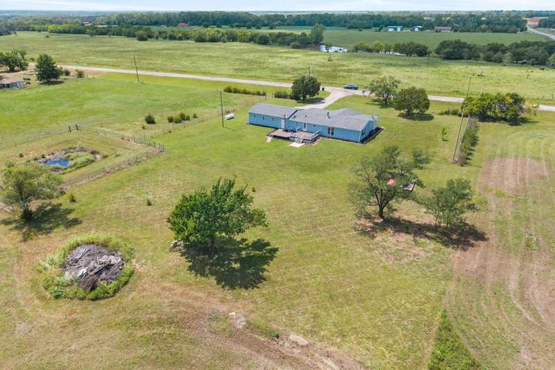 Country living at its best! Welcome home to 21040 SW Boyer Rd in Douglass, where peace, space, and modern comforts come together on 10 beautiful acres. This remodeled retreat features warm wood laminate flooring, fresh paint, and stylish light fixtures throughout. The kitchen is a true showpiece with granite countertops, new stainless-steel appliances, and an open layout that flows seamlessly into the living space with vaulted ceilings, a cozy woodburning fireplace, and abundant natural light. The primary suite offers a spa-like escape with a large Jacuzzi tub, dual sinks, granite vanity, separate shower, and walk-in closet. Solid wood doors, trim, and full sheetrock walls add a lasting quality and charm to every room. Step outside to enjoy evenings on the huge covered front porch or relax on the spacious back deck overlooking your private countryside. Car enthusiasts and hobbyists will love the massive 36x26 three-car garage, fully sheet rocked, insulated, and finished with painted floorsperfect for projects and storage. A 14x12 concrete storm shelter adds peace of mind, while the acreage, complete with pond, is ideal for fencing and keeping horses or livestock. This is your chance to own a slice of country paradiseschedule your showing today and start living the lifestyle youve always dreamed of!