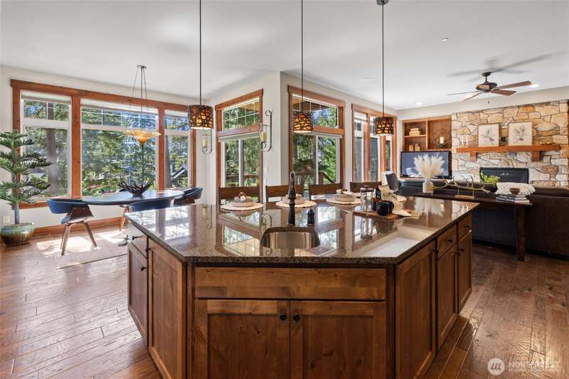 Picture perfect Suncadia Home. 4 bed 3.25 bath on large private lot. Primary Suite on main level, with 5pc bath. 2nd Owners suite in daylight basement + bonus room & 2 more beds. Step inside to a great room filled w/ natural light & embraced by beautiful trees. Hardwood floors & Wolf range among custom touches. Host in the spacious Chef’s kitchen + dining area, upper deck & living area w/ fp. Home has AC. Don’t miss the wine room! Out-back to lower deck, gas firepit & hot tub. Perched above the 16th hole at Prospector, w/ SW exposure, watch the golfers & wildlife: eagles, elk & deer! Quiet setting yet centrally located. A short distance to Swiftwater Cellars Winery, trails, golf & much more. Just 80 min to Seattle. This place is amazing!