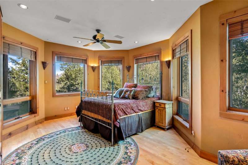 Discover your private mountain sanctuary, nestled on 40 serene acres of forested land via a scenic 9 mile drive from Steamboat Springs through the South Valley and Grouse Creek Park. This uniquely gorgeous property offers breathtaking views of the Steamboat Ski Area, Continental Divide, and South Valley, met with towering pines, aspens, lush ferns, wildflowers and the gentle flow of Grouse Creek, creating a truly magical, end of road setting. The centerpiece is a 5-bedroom custom log home, designed by Joe Patrick Robbins and perfect for hosting family and friends. From the moment you enter through the handcrafted front door featuring a carving of the beloved local Gilpin Lake, you'll be captivated by the warm and inviting atmosphere. The great room boasts a stunning wood-burning stone fireplace and expansive picture windows that frame panoramic views of the deck, ski area, and beyond. The gourmet kitchen features honed granite countertops and a cozy breakfast nook, while the main level also includes a den, office, full and half bath, laundry, and mudroom with direct access to the attached garage. Upstairs, the primary suite is a luxurious retreat complete with a gas fireplace, large walk-in closet, and spa-like bath. The lower level provides ample space for relaxation and entertainment, with three additional bedrooms, a family room with a game and exercise area, a fireplace, wet bar, and a theater room. Even your furry friends will feel at home, with direct access to the fenced outdoor space. And, of course, no mountain getaway is complete without a hot tub under the stars after a day on the slopes. Across the bridged entry, a charming 1-bedroom apartment above the 2-car heated garage offers an ideal space for guests or a caretaker. This home offers the perfect blend of privacy, luxury, and convenience. Just 15 minutes from town, you'll enjoy easy access to skiing, shopping, and dining. This is mountain living at its finest!