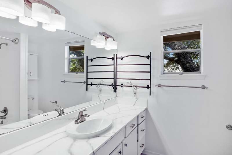Spacious 1-Bedroom Retreat in High Hollows North. Step into this beautifully refreshed 1-bedroom, 1-bath condo in the well-established High Hollows North Condominiumsa hidden gem surrounded by lush, mature trees. Freshly painted and thoughtfully updated, the expansive living and dining area offers the perfect setting for entertaining guests or unwinding in comfort. The generously sized bedroom features a walk-in closet that not only provides custom storage but also accommodates a stacking washer and dryer, which are included with the property. The bathroom has been elegantly upgraded with brand-new quartzite countertops, modern lighting, stylish fixtures, and sleek vinyl flooring. In the kitchen, you'll find granite countertops, a classic tile backsplash, and updated flooring, complemented by a stainless steel refrigerator that stays with the home.Residents enjoy access to multiple pools, grilling areas, and beautifully landscaped grounds. Plus, the HOA covers most utilities, making life here even more effortless.