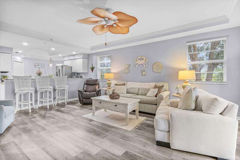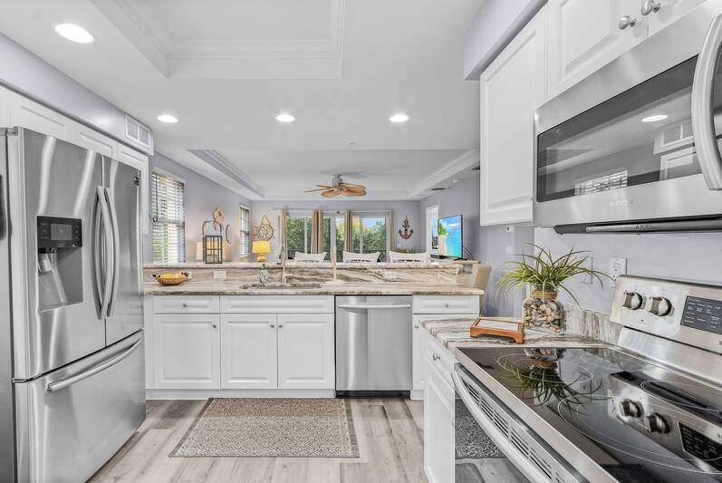 NO, it did NOT flood at all!! Can be sold without the Boat Dock/Lift for $329k. THE ONLY GROUND FLOOR END-UNIT and the only end-unit with a Boat Dock/Lift available in the highly sought after Island Cove Waterfront Community. If the price of the HOA is a concern, you won't get more bang for your buck than here in this Beautifully Maintained Gated Boating Community! Imagine waking up everyday in this impressive 3 bedroom 2 bath waterfront end-unit Condo, just a few steps to your Boat lifted on your personal dock, easily cruising the waters with direct gulf access (no bridges), a true boater's paradise! Whether you are taking in the salt air & views with a cup of coffee from your patio enjoying the morning birds' soothing chirps or cruising the gulf making lasting memories, your waterfront lifestyle awaits you BUT without the hassle of maintaining a property! Located in a gated community, this condo provides an added layer of security and peace of mind. No need for stairs with this 1st floor condo which also offers unique extra padded floors upstairs which makes it virtually sound proof from the condo above, as well as being able to enjoy the tranquility of your surroundings without any neighbors on one side. The open floor plan maximizes natural light, creating a bright & airy atmosphere which is best utilized by entertaining guests with the Kitchen being your center stage. This home has a whole house water filtration system & pull-out kitchen shelving for excellent storage and convenience. Also, no need to store your items at another location, as this unit can come with one of the limited available storage closets. Less than a 5 minute drive to restaurants, resorts, shopping, boating, parks, islands, airports and hiking trails! Great fishing in the area with some great local beaches nearby. Fall in Love & Make this your Home! Live the dream & Move to Paradise! If comparing Units inside this community, please take note that this is the largest sqft layout and that this Unit comes with a Slip, Dock & Boat Lift (steps from the patio door) which is different than just a "Slip".