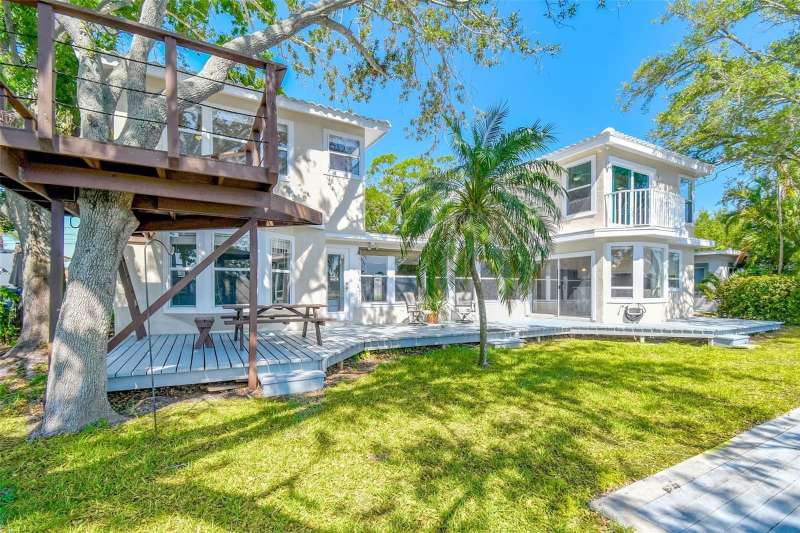 Under contract-accepting backup offers. One or more photo(s) has been virtually staged. SELLER WILL PAY ONE DISCOUNT POINT TO HELP REDUCE THE BUYER’S INTEREST RATE AND MONTHLY PAYMENT. Welcome to waterfront living at its finest! This beautifully remodeled 4-bedroom, 3.5-bath home — with the potential for a 5th bedroom — offers a bright, open layout and high-end finishes throughout, ready for you to move right in. Inside, you'll be greeted by a spacious floor plan filled with natural light and stunning water views from nearly every room. The updated kitchen features sleek quartz countertops, shaker-style cabinetry, and stainless steel appliances — perfect for cooking, entertaining, and gathering with family and friends. The expansive primary suite is conveniently located on the first floor, offering breathtaking water views, a large walk-in closet, and a beautifully finished en-suite bath. Two additional bedrooms, a full bathroom, a half bath, and an interior laundry room complete the first level. Upstairs, you'll find a second private primary suite with its own balcony — the perfect place to enjoy incredible canal views. An additional upstairs room offers flexibility as a 5th bedroom, home office, or den, all overlooking the water.Step outside to your private waterfront retreat, featuring a large deck and a private floating dock along a wide canal with direct access to Tampa Bay. Whether you're kayaking, boating, fishing, or simply relaxing by the water, this backyard is designed for the ultimate coastal lifestyle.The home’s remodeling was fully permitted and completed by a licensed contractor for peace of mind. The charming Coastal Mediterranean design, highlighted by an elegant tile roof, blends beautifully with the surrounding waterfront setting. The sprinkler system was updated this past winter and operates using reclaimed water, providing both efficiency and sustainability for your lush landscaping. A brand-new water heater adds to the many recent updates.Perfectly located just minutes from vibrant downtown St. Petersburg, award-winning beaches, dining, and entertainment, this exceptional property offers the Florida lifestyle you've been dreaming of.