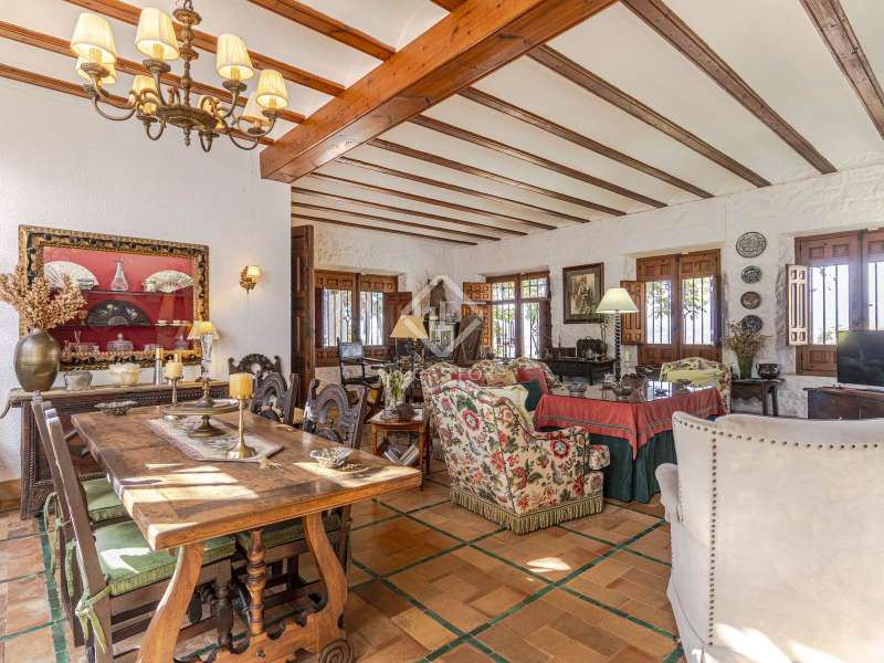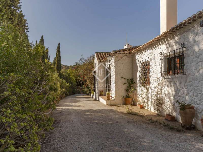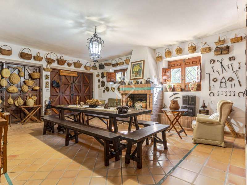Lucas Fox presents the San Roque farmhouse, a building with a plot of more than 55 hectares that offers a lot of tranquility and unrivalled panoramic views of the sea, the mountains and the coast of Motril. La Finca is located in a peaceful natural setting, without having to give up proximity to all the amenities offered by the Costa Tropical. The main farmhouse is surrounded by mature gardens, with water fountains. Various terraces with pergolas are distributed throughout the space, where you can relax and enjoy wonderful views of the sea and the mountains. The elegant main entrance leads to a spacious separate kitchen, as well as the living-dining room, with a cozy fireplace, perfect for enjoying with family or friends. In the centre, there is a beautiful Andalusian patio that leads to the five bedrooms. Three of them have private bathrooms, while the others connect directly to the nearby bathrooms. In addition, the old garage has been transformed into a cozy winter living room , with a fireplace, ideal for enjoying at any time of the year. Next to the farmhouse is the Caseros house with a living room, a small kitchen and two bedrooms with a bathroom. It is ideal for service personnel or for entertain and giving them greater privacy. A bridge that crosses the fruit farm leads to the pool house, a space designed for enjoyment and relaxation. The large swimming pool is surrounded by an impressive natural environment, with panoramic views of the sea and the Costa Tropical. This building has two bedrooms with bathroom and a bar area, ideal for meetings and celebrations. La Finca offers endless possibilities: from agricultural activities on its extensive land, to tourist projects or simply as a private retreat. Its privileged location allows you to enjoy the complete privacy of a property of this size, without giving up the proximity of the amenities of Motril, the beautiful beaches of the Costa Tropical and Granada airport. If you are looking for a luxurious traditional property , in one of the most desirable areas of Andalusia, please get in touch for more information or to arrange a personalised viewing.