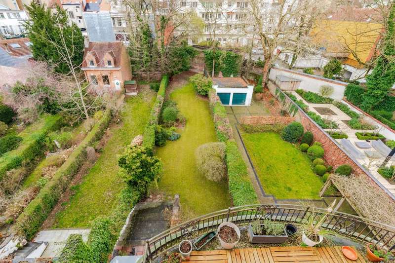 Located opposite the Abbey of La Cambre, this mansion from 1925 captivates with its elegant English-style façade adorned with a magnificent bow window, offering a unique and timeless character. Set on a plot of ± 6.50 ares, it benefits from an exceptional private garden of ± 400 m², a rare find in this sought-after neighbourhood. With a total surface area of approximately 630 m², the house is currently divided into five apartments, with a legal urban planning status, but can be returned to its original layout as a single-family house. Its generous volumes, preserved architectural details and lift make it an exceptional property. A set of three garages and two outdoor spaces complete this rare property, combining charm, space and comfort in the heart of the city. EPC E