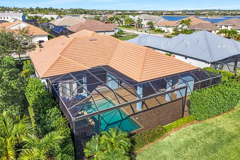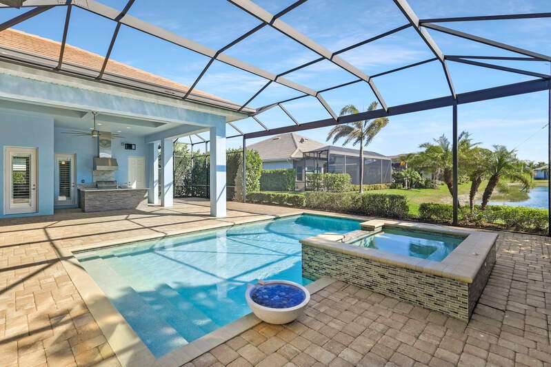 Experience the ultimate Florida lifestyle in this luxurious lakefront home at Naples Reserve with its own outdoor oasis overlooking the water and world-class amenities at your doorstep. Built in 2018 by Stock Development, one of Southwest Florida's most prestigious and award-winning builders, this residence in the sought-after Sparrow Cay neighborhood of Naples Reserve captures the essence of Florida living at its finest. Positioned just a short walk or bike ride to the clubhouse and fitness center, this home places every convenience within easy reach. Situated on a 0.24-acre lakefront lot, this home offers timeless craftsmanship, thoughtful upgrades, and a lifestyle that blends everyday comfort with resort-style luxury. With 3,949 total square feet including 2,704 square feet under air, this spacious layout features four Bedrooms plus a versatile Den and four Bathrooms, all under soaring ceilings that fill the home with light and volume. From the moment you enter, Stock's reputation for quality is evident in every detail-finishes, flooring, cabinetry, and architectural touches that elevate this home well beyond the ordinary. The heart of the home flows seamlessly into the outdoors, where Florida living truly shines. An expansive covered lanai serves as an outdoor retreat, complete with a massive custom kitchen and oversized island, perfect for entertaining on a grand scale. Overlooking the lake, the home also features a mosquito-nix system, ensuring year-round comfort. With this setting, dining al fresco or relaxing by the water feels like living at your own private resort. Peace of mind and practicality are built into this residence as well. The home is outfitted with hurricane-impact-resistant doors and windows and includes a portable generator for backup power. A brand-new epoxy garage floor adds durability and style, while low HOA fees and the fact that the property is not located in a flood zone make it a standout value for luxury living in Naples. Naples Reserve is more than a community..it's a destination. Designed around a 125-acre recreational lake, residents enjoy endless opportunities for adventure, from kayaking and paddleboarding to leisurely cruises on the water. The amenities are unmatched, featuring a resort-style pool with lap lanes, tennis and pickleball courts, bocce ball, beach volleyball, basketball, a state-of-the-art fitness center, two dog parks, and miles of walking and biking trails. Even more exciting, Naples Reserve is preparing to unveil its most impressive additions yet: a brand-new clubhouse, restaurant, and Pool Gazebo area, scheduled for completion in March 2026. These enhancements will elevate the already resort-style lifestyle to an entirely new level. And beyond Naples Reserve, the best of Southwest Florida awaits with its white-sand beaches, the charm of downtown Naples, and the relaxed beauty of Marco Island all just minutes away.