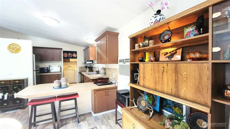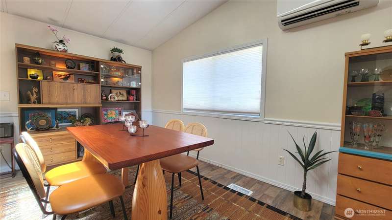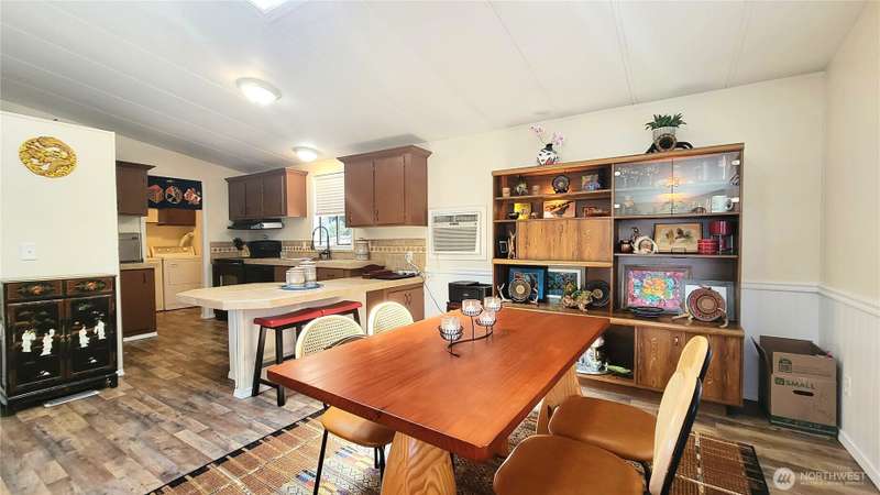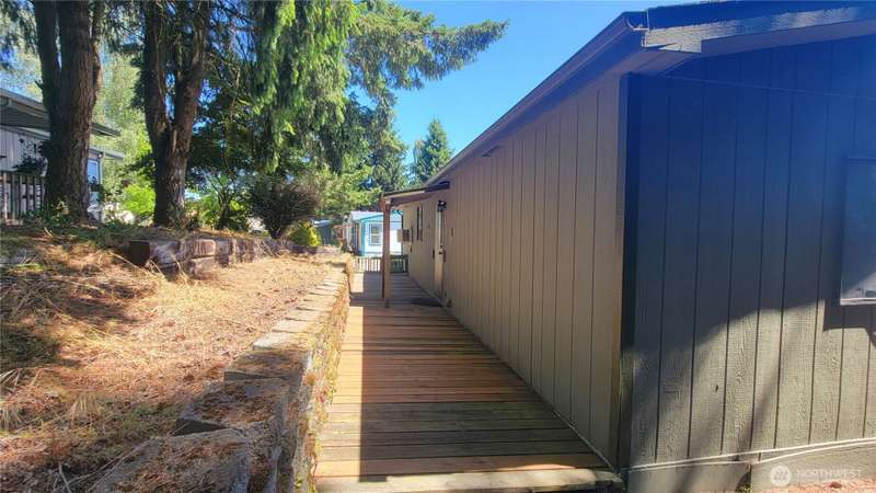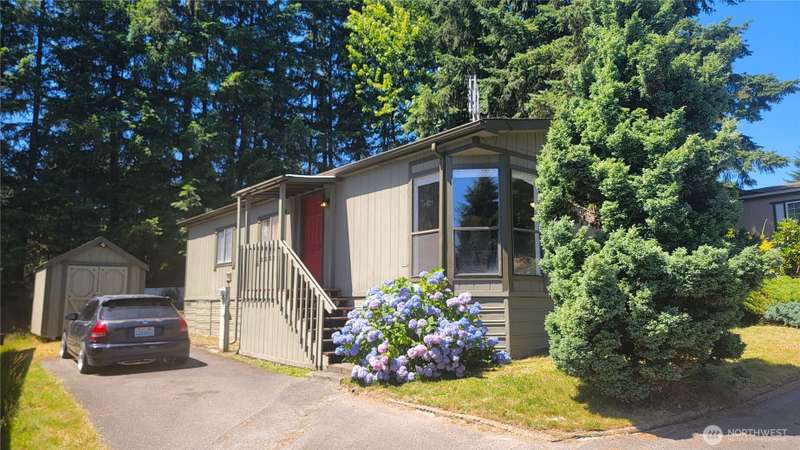 Updated Silverdale manufactured home located in an all-ages park with a lease fee of just $740/mo. The home features 3 beds & 2 full baths, including 1 off the primary suite. It is filled with natural light, boasting floor-to-ceiling windows in the living room, vaulted ceilings with skylights, & an open kitchen with bar seating. The interior has been updated throughout & is equipped with AC. Additional highlights include beautiful flooring, updated six-panel doors, & wainscoting. The exterior offers garden space, a storage shed & a deck. Conveniently located near waterfront parks, schools, the hospital & all shopping centers in Silverdale. The home is just 12 minutes from Bangor Base & 21 minutes from PSNS & the Seattle ferry. CK schools!