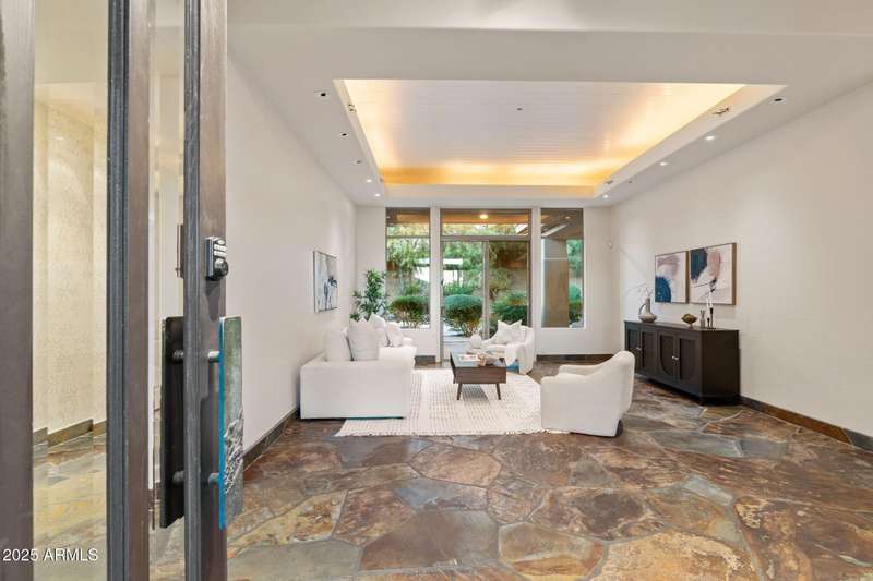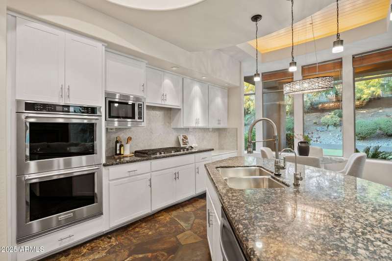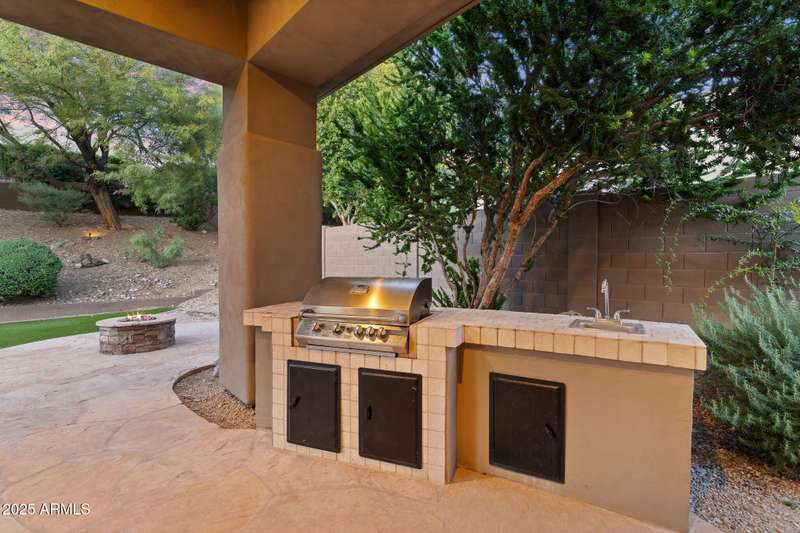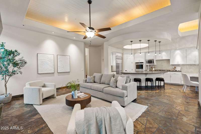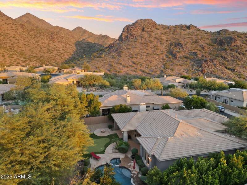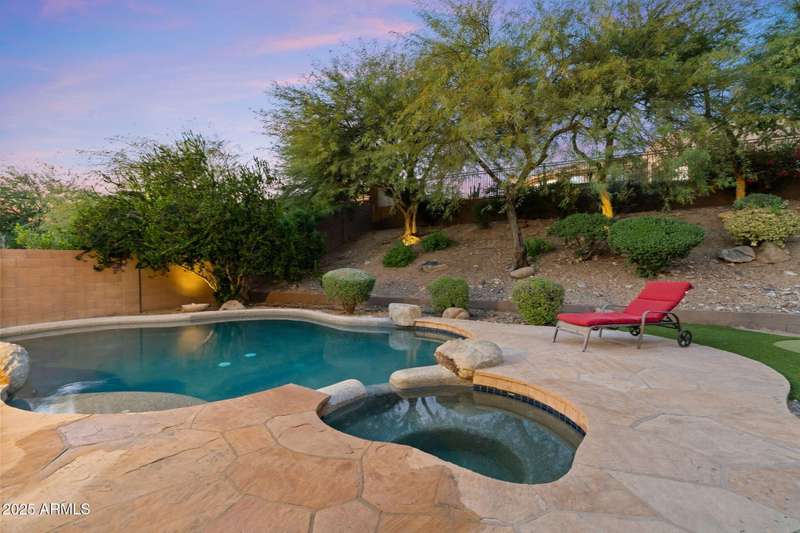 Nestled within the highly sought-after gated community of Trovas at McDowell Mountain Ranch, this inviting residence showcases a desirable split master floor plan with a 4 bedrooms and 3.5 baths. One bedroom serves as a private en suite, while two share a convenient Jack-and-Jill setup. A spacious office offers flexibility to convert into a fifth bedroom or an additional living or entertainment space. The kitchen was beautifully updated in 2023 with modern cabinetry, stylish backsplash, and new appliances. Between the living and family rooms, a convenient wet bar enhances the home's entertaining appeal. Perfectly situated on an interior lot, the backyard offers a private retreat featuring a sparkling heated pool and spa, and putting green, ideal for relaxing or entertaining year-round. Award-winning McDowell Mountain Ranch is a premier master-planned community located in North Scottsdale. Situated at the foothills of the McDowell Mountains, enjoy the beautiful desert serenity,- yet also have all the conveniences of living "in-town" just outside the neighborhood. The 101 Freeway is 5 minutes away, as well as restaurants, shopping, groceries, and so much more! This friendly neighborhood features 2 heated community pools/spas, playgrounds, basketball courts, tennis courts, and one of the best Pickleball leagues in town! The HOA hosts several events throughout the year for everyone to enjoy and connect with neighbors. Numerous trails, both paved & unpaved that meander throughout the community. McDowell Mountain Golf Club, designed by Phil Mickelson, with the clubhouse & restaurant, is a 2 minute drive and is open to the public. The City of Scottsdale Aquatic Center w/Lazy River & Library is close by, in addition to miles and miles of hiking, biking & equestrian trails at the landmark Gateway to the McDowell Sonoran Preserve trailhead.
