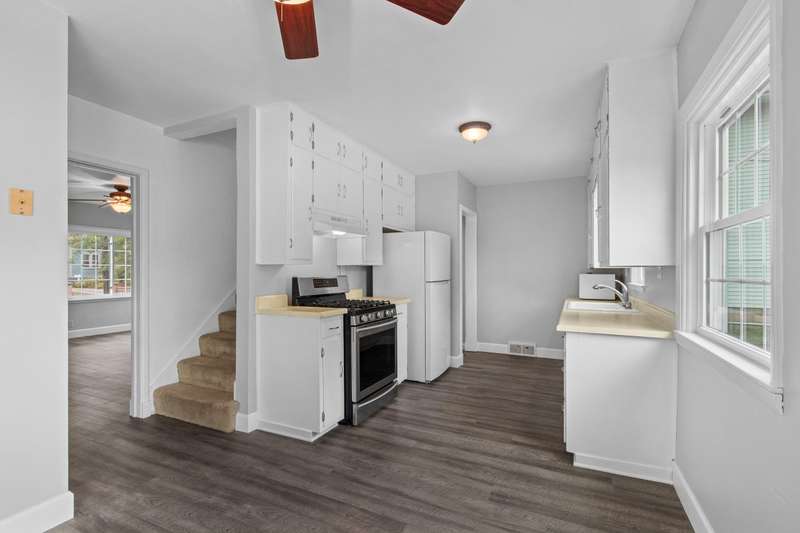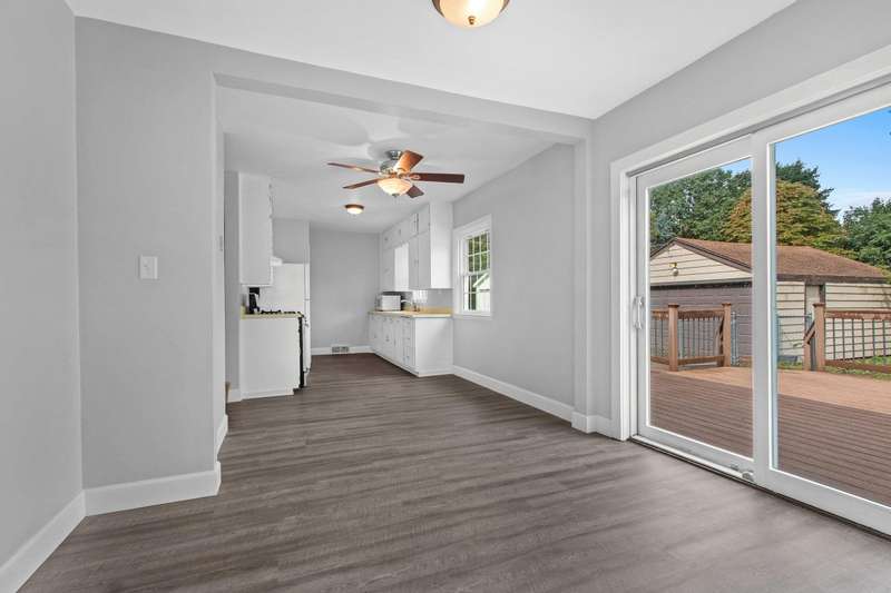 Welcome to this delightful 2-bedroom, 1-bath Cape Cod home, perfect for cozy living and stylish entertaining. The main floor features brand new plank flooring throughout, adding a fresh and modern touch to the classic layout. Enjoy outdoor living with both front and back decks—ideal for gatherings, relaxing evenings, or morning coffee. The large, fully fenced yard offers ample space for pets, play, or gardening. Upstairs, you'll find a generously sized bedroom brimming with potential. Let your creativity shine—this space could become a luxurious primary suite, home office, or hobby room. Don’t miss the opportunity to make this charming home your own!