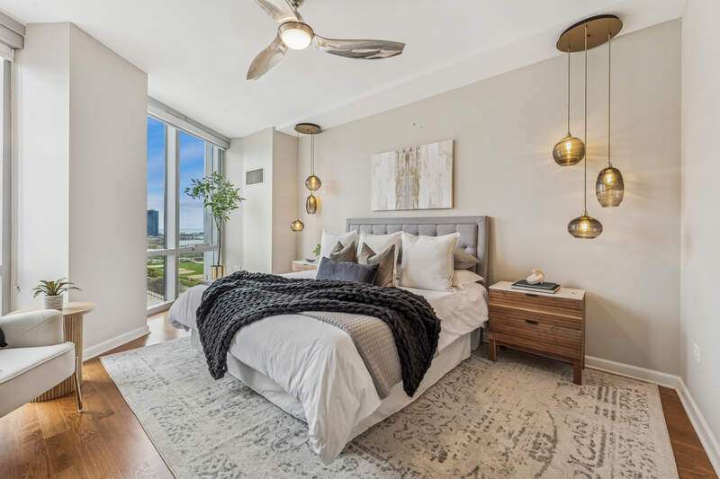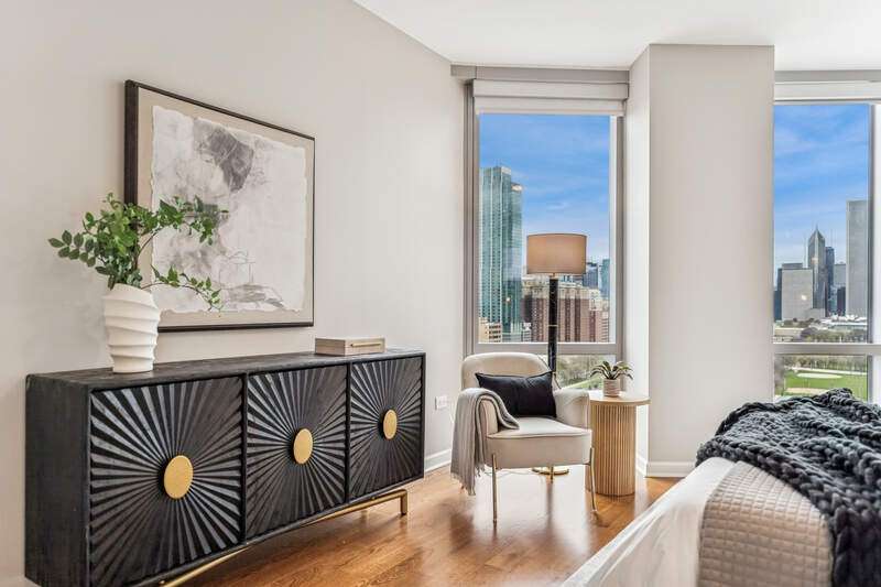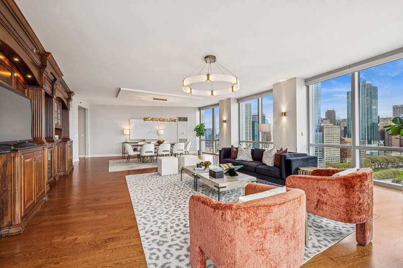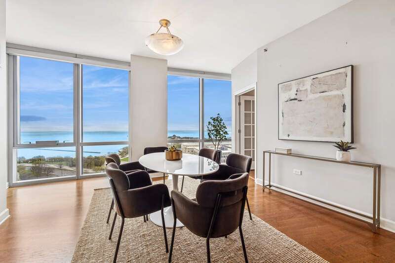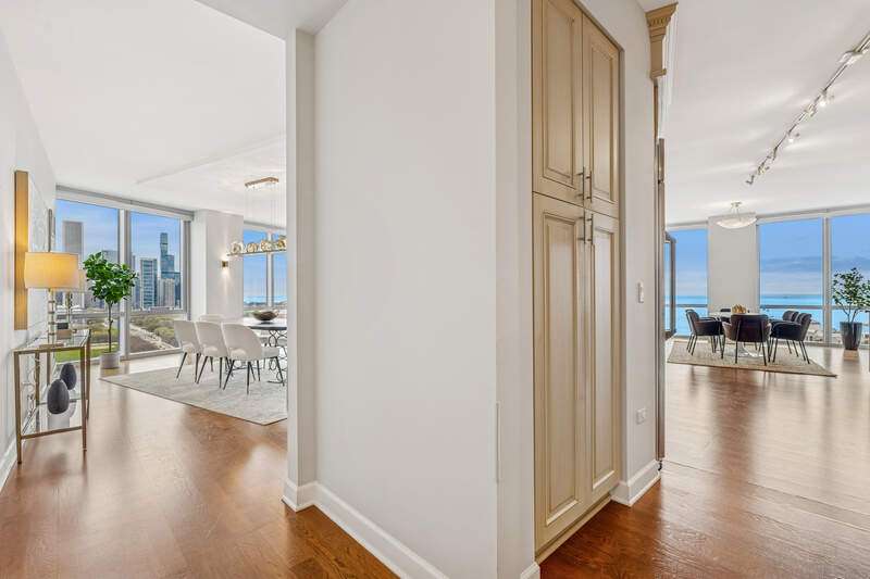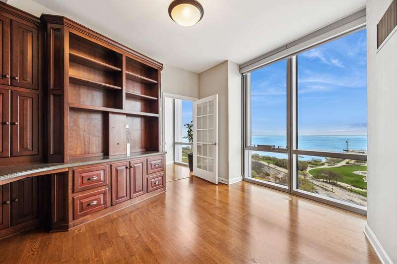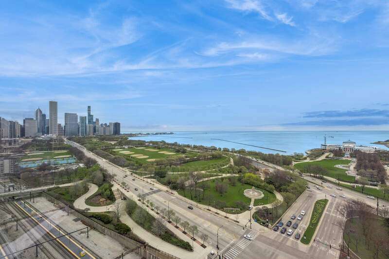 Enjoy incredible, protected, panoramic views of the lake, Grant Park, Buckingham Fountain, Museum Park, and the Chicago skyline from this 2920 SQFT NE corner residence at One Museum Park East. This residence features 9'2" ceilings, generous room sizes, and a flowing, thoughtful floor plan. The open living/dining room enjoys abundant natural light through floor-to-ceiling windows with stunning views, and walnut built-ins. With unobstructed views of the Navy Pier fireworks, the NASCAR race, Chicago marathon and more, this is the perfect place to entertain. The separate kitchen will make any cook or caterer happy with abundant counter and cabinet space, stainless steel appliances, and an eat-in area or family room. With an entire "wing" dedicated to the primary suite, this serene space is the perfect place to relax and recharge. This suite features a graciously sized bedroom with north-facing, skyline views, two walk-in closets, and an ensuite bath with Whirlpool tub, separate shower, double sink, linen storage, and private commode. Two additional bedrooms are located on the south side of the residence. The third bedroom is currently set up as a den/office with walnut built-ins. Two full baths with showers and a large laundry room with storage complete the space. Two extra-large, side-by-side parking spaces with an electric charger are availble for $45,000 for each parking space. One Museum Park East has two pools (one indoor, one outdoor), sauna, sundeck with BBQ and dining area, exercise room, two remodeled club rooms, 24-hour door staff, onsite property management, attached garage parking, and a social committee that plans events throughout the year. Walk to Soldier Field, concerts, festivals, parks, playgrounds, museums, and public transit. South Loop Elementary School District. Welcome home!