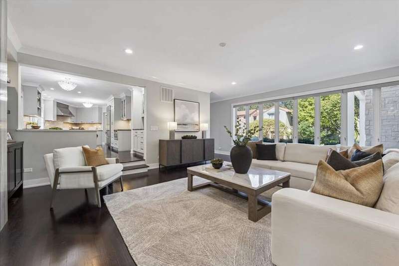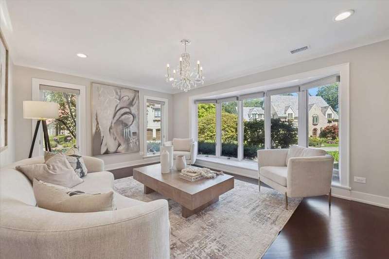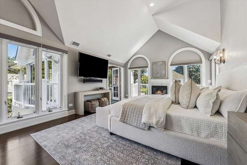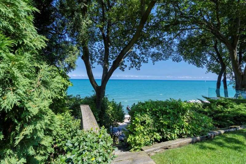 East Winnetka One-of-a-Kind Home with Private Beach Access. Tucked away on an exclusive private lane, this exceptional East Winnetka residence offers a rare opportunity to enjoy privacy, luxury, and direct access to your own private beach. Recently renovated, 5 bedrooms, 3 baths + 2 half baths home seamlessly blends timeless elegance with modern sophistication, featuring premium finishes and meticulous attention to detail throughout. Step into the welcoming foyer, greeted by a bright and airy open-concept floor plan. The spacious living room is ideal for entertaining guests or enjoying quiet family moments. A stunning, newly updated family room features a newer fireplace and custom, built-in bookcases, creating a warm and inviting ambiance. Adjacent to the dining area, NanoWall 10'+ folding doors open to a beautifully landscaped patio, perfect for outdoor dining and relaxation. French doors lead into a heated floor cozy four-season room, filled with natural light and offering lake views. Currently used as a workout area, this flexible space can easily transform into a den, sunroom, office, or playroom. Upstairs, the primary suite is a serene sanctuary, blending timeless elegance with refined comfort. Enjoy the warmth of the fireplace, take in stunning lake views from two private balconies, or retreat to the wood-paneled sitting room-a peaceful space filled with natural light and breathtaking views, perfect for lingering over morning coffee or unwinding at your day's end. The second floor also features a newly designed laundry room, three generously sized bedrooms, and two fully renovated bathrooms. Beautifully refinished hardwood floors flow throughout the first and second levels, adding warmth and character! The third floor 5th bedroom offers a perfect space for teens or guests, featuring a large loft area, skylights, and an additional balcony, creating a bright and airy space for relaxation, study, or hobbies. The lower level is designed with both functionality and entertainment in mind. Enjoy a newly renovated media/recreation room with a beverage center featuring a sub-zero bar fridge, custom storage including a cedar closet, a renovated half bath, and an additional laundry room. A well-organized mudroom provides direct access to the attached two-car garage, while a heated driveway ensures convenience in all seasons. Curb appeal is unmatched, thanks to recent exterior upgrades that include new James Hardie plank siding, all-new balconies and decks designed by Airoom, and newer rear Lannon stone stairs leading to the garage. A dedicated dog run is also included. Enjoy your private beach, shared only with the five homes on your lane, making it the perfect escape just steps from your door. This prime East Winnetka location is close to Lloyd Park, top-rated schools, the Metra train, and the newly redesigned Plaza Del Lago shopping and dining district. It's also just minutes from downtown Winnetka. Combining luxury, comfort, privacy, and a truly unbeatable location, this East Winnetka gem is truly a one-of-a-kind home. Don't miss your opportunity to make this exceptional home yours!