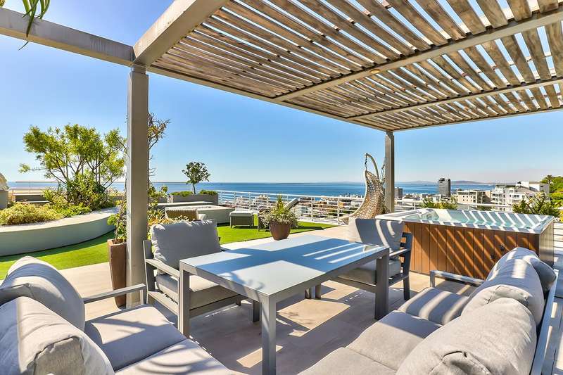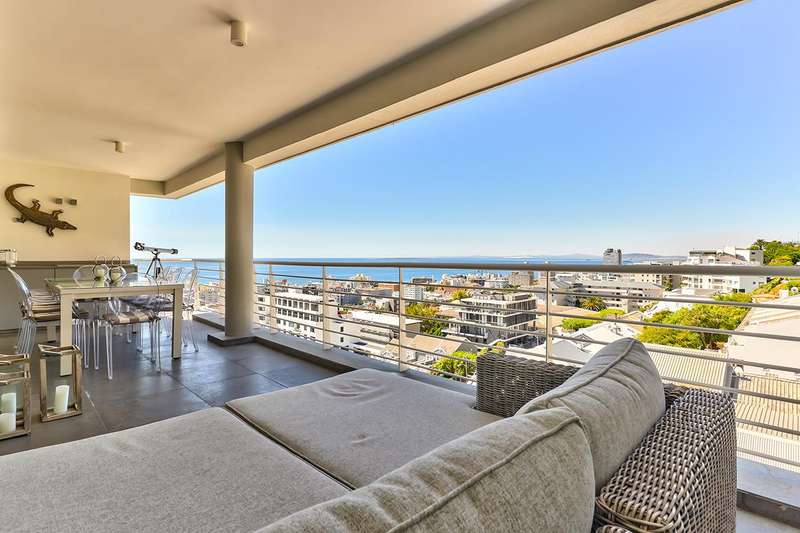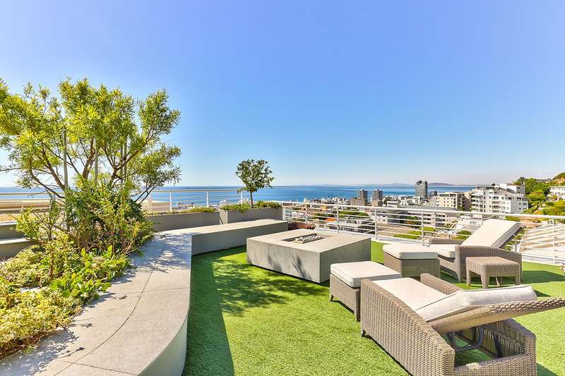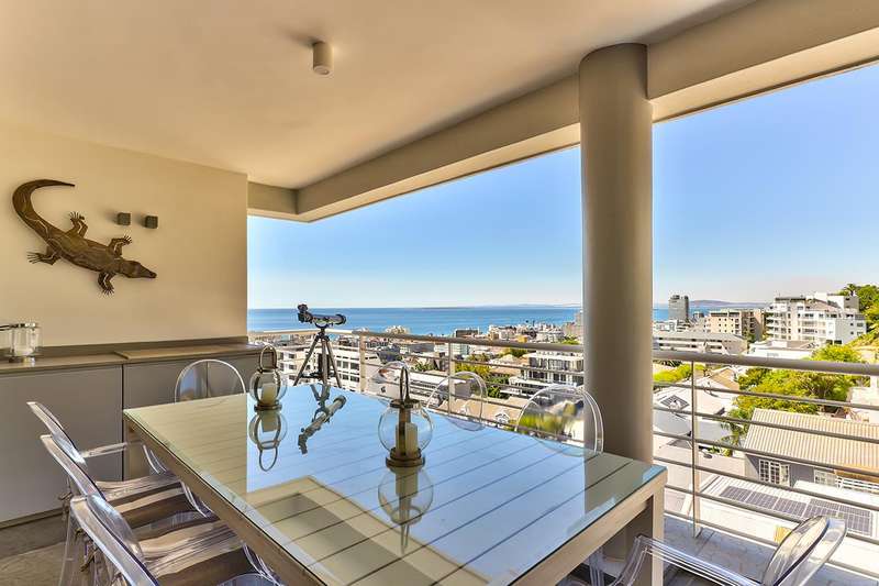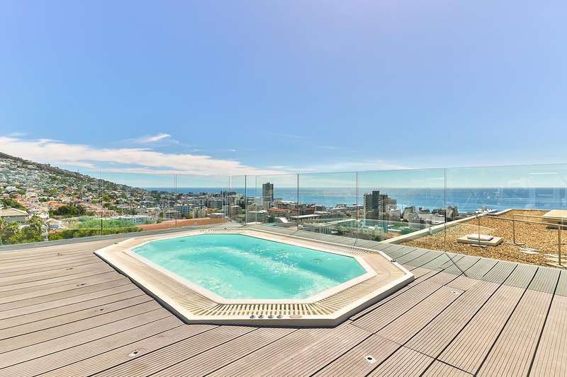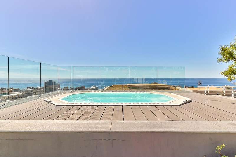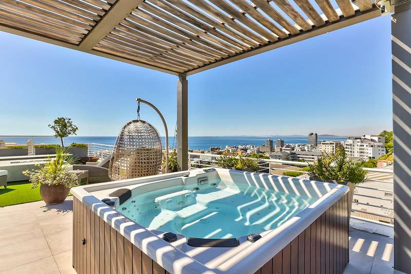 Luxury Penthouse offering 171m2 rooftop terrace with pool, jacuzzi and 360 degree ocean?áand mountain views Exclusive Mandate Located at the foot of Signal Hill, this elegant and light flooded two-bedroomed penthouse apartment on the top floor has the most amazing views of the ocean, Lions Head and Signal Hill. The open-plan lounge, dining and kitchen area with caesarstone countertops and SMEG gas hob, oak wood flooring, fireplace and ceiling-to-floor stacking doors seamlessly flow onto a spacious covered veranda with a built in braai, taking in the spectacular views of the Atlantic Ocean. The absolute wow factor of this apartment is the 360 degree view of the ocean and mountains from your upstairs 171m2 rooftop terrace. Sit in the heated pool or Jacuzzi sipping on an Aperol's?áand enjoy the amazing views and spectacular sunsets over the sea. With a built in gas braai this is the perfect place for entertaining your guests or unwinding after a long day. The beautifully appointed en-suite main bedroom with a fireplace has sweeping ocean views as well, with direct access to the veranda. The open plan bathroom comes with a free standing bath, enormous walk in shower and a separate toilet. The second en-suite bedroom overlooks Lions Head and the ocean. Guest loo, small office plus brand new inverter. Option to purchase furniture. No AirBnB. Regret no pets. Two undercover parking spaces plus a storeroom. This unique apartment will make you feel like you are on a permanent holiday.
