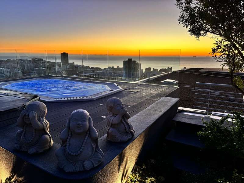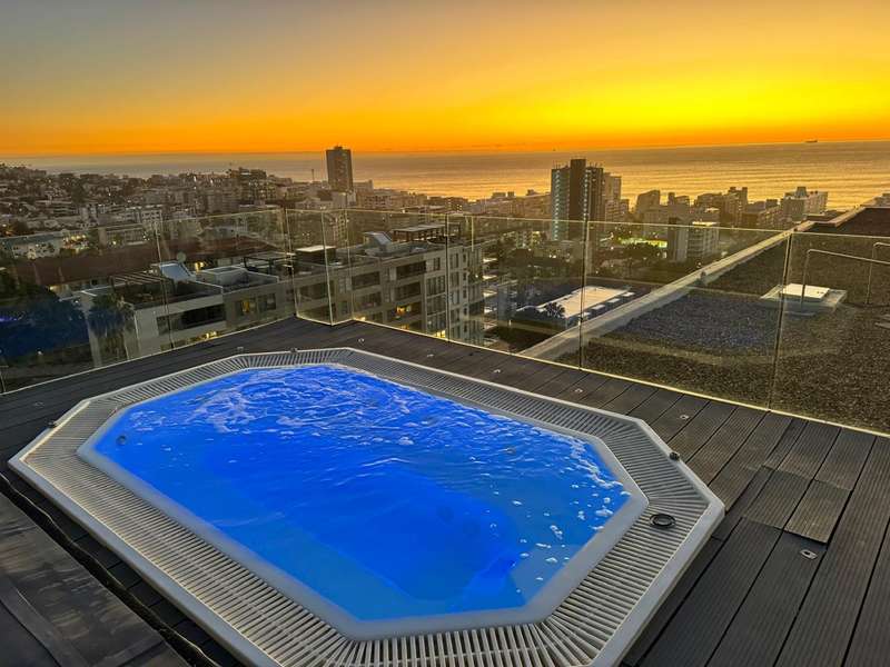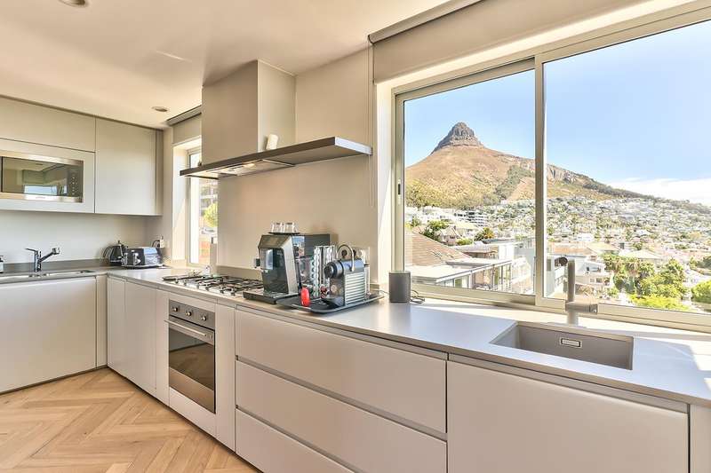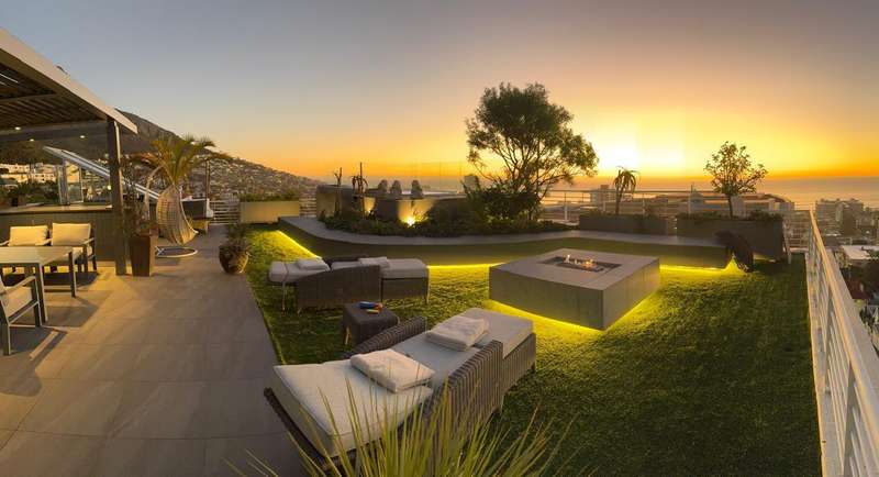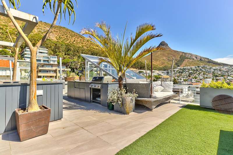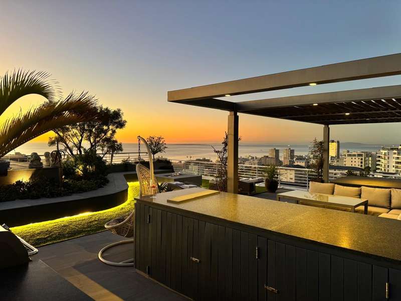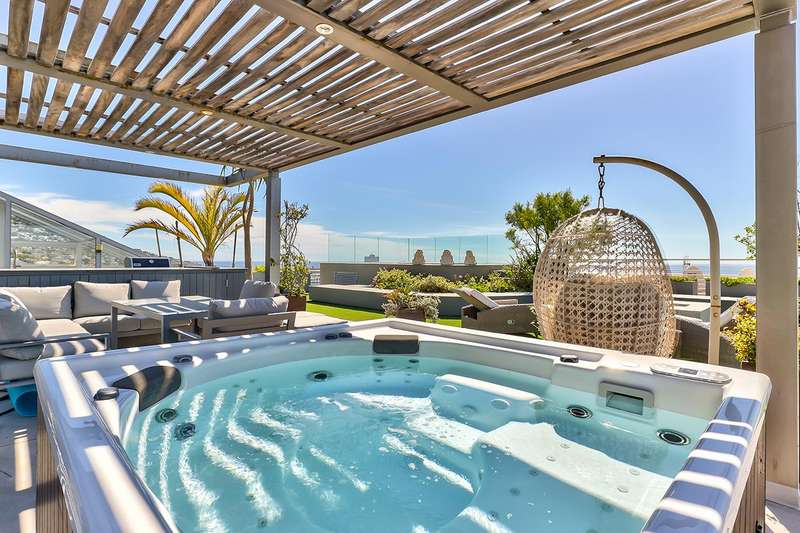 Luxury Penthouse offering 171m2 rooftop terrace with pool, jacuzzi and 360 degree ocean?áand mountain views Exclusive Mandate Located at the foot of Signal Hill, this elegant and light flooded two-bedroomed penthouse apartment on the top floor has the most amazing views of the ocean, Lions Head and Signal Hill. The open-plan lounge, dining and kitchen area with caesarstone countertops and SMEG gas hob, oak wood flooring, fireplace and ceiling-to-floor stacking doors seamlessly flow onto a spacious covered veranda with a built in braai, taking in the spectacular views of the Atlantic Ocean. The absolute wow factor of this apartment is the 360 degree view of the ocean and mountains from your upstairs 171m2 rooftop terrace. Sit in the heated pool or Jacuzzi sipping on an Aperol's?áand enjoy the amazing views and spectacular sunsets over the sea. With a built in gas braai this is the perfect place for entertaining your guests or unwinding after a long day. The beautifully appointed en-suite main bedroom with a fireplace has sweeping ocean views as well, with direct access to the veranda. The open plan bathroom comes with a free standing bath, enormous walk in shower and a separate toilet. The second en-suite bedroom overlooks Lions Head and the ocean. Guest loo, small office plus brand new inverter. Option to purchase furniture. No AirBnB. Regret no pets. Two undercover parking spaces plus a storeroom. This unique apartment will make you feel like you are on a permanent holiday.