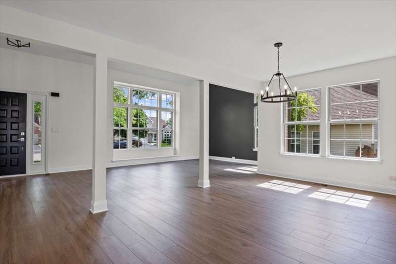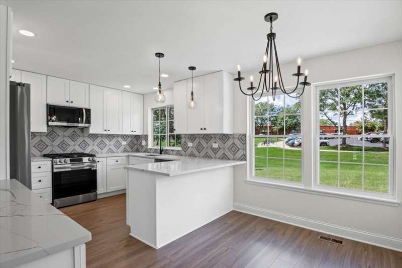 Beautifully updated 4-bedroom, 2.5-bath home featuring stylish finishes throughout. The brand-new kitchen and bathrooms showcase striking tile work and modern design, complemented by new appliances. The spacious open floor plan is filled with natural light, highlighted by cathedral ceilings in both the living room and the primary suite. The inviting family room offers a sleek fireplace and two sliding doors leading to the new patio, perfect for entertaining. Outside, enjoy a large yard that backs directly to the elementary school, along with a 2-car garage providing ample storage and convenience. This move-in ready home combines thoughtful updates with a bright, airy layout designed for today's lifestyle.