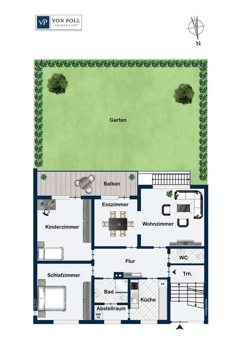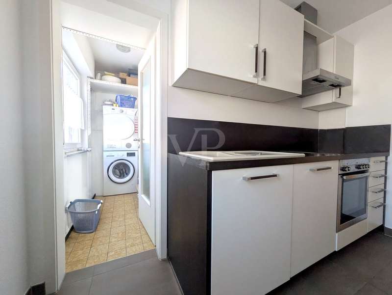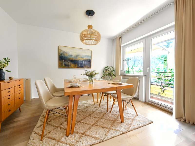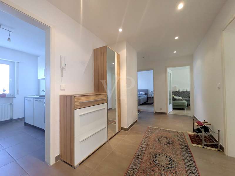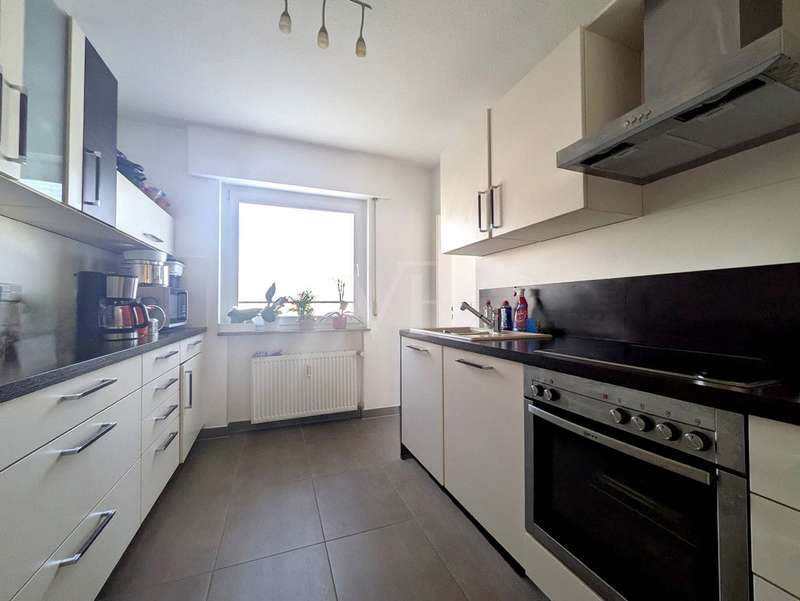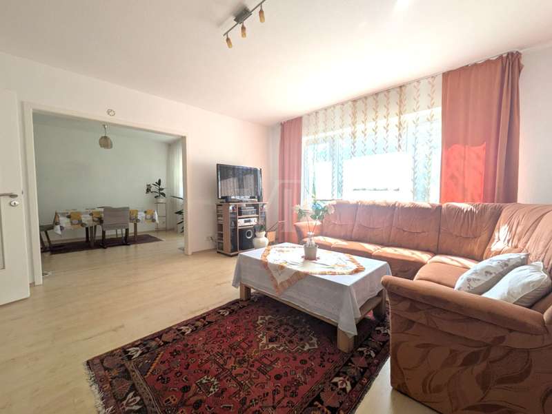 This well-kept raised first floor apartment is located in an apartment building built in 1968 with a total of three parties. It offers a living space of approx. 103 m², which impresses with its optimal and generous room layout. The apartment has four well-designed rooms and is ideal for couples, small families or individuals who appreciate a central yet quiet residential location. A spacious hallway harmoniously connects all the rooms in the apartment. The heart of the apartment is the spacious living room, which is open to the adjoining dining room. From there, there is direct access to the covered south-facing balcony with a view of the communal garden. Two spacious bedrooms are available. The spacious fitted kitchen is equipped with modern appliances. Adjacent to the kitchen is a loggia, very practical as a storage area and with washing machine and dryer connections. The bathroom is equipped with a walk-in shower and also has a WC. There is a separate guest WC for added convenience. The apartment was extensively modernized in 2011 and features contemporary fittings. It includes double-glazed plastic windows, which provide good heat and sound insulation. The floors are laid with high-quality tiles and easy-care laminate. In the hallway, practical ceiling spotlights provide pleasant and even lighting. A garage belongs to the apartment. The apartment also has two cellar rooms, which offer additional storage space. Thanks to its well-kept furnishings, the apartment offers the best conditions for comfortable living. This property offers prospective buyers the opportunity to acquire an attractive and well-equipped apartment in the center of Fellbach. According to the 2025/26 economic plan, the monthly house rent includes the monthly reserves of €132 and the current monthly heating costs of €392. Please feel free to contact us for a viewing appointment.