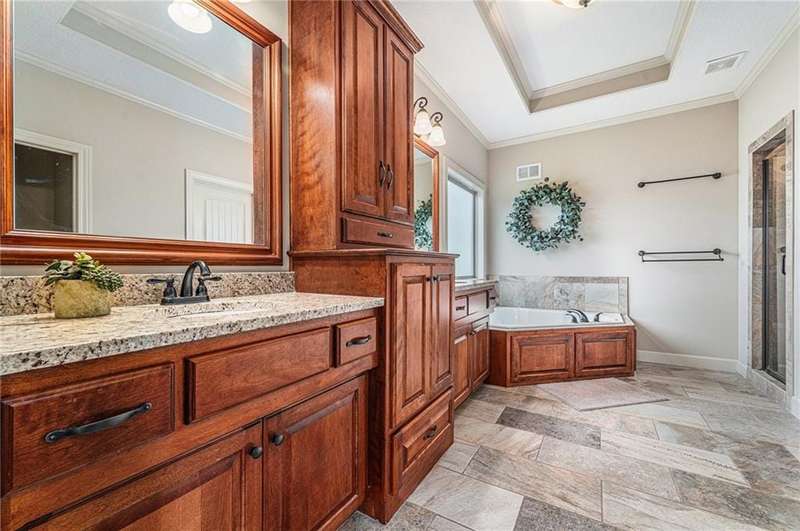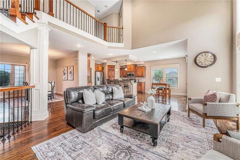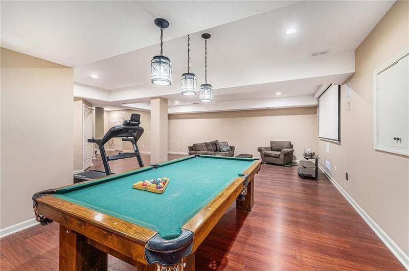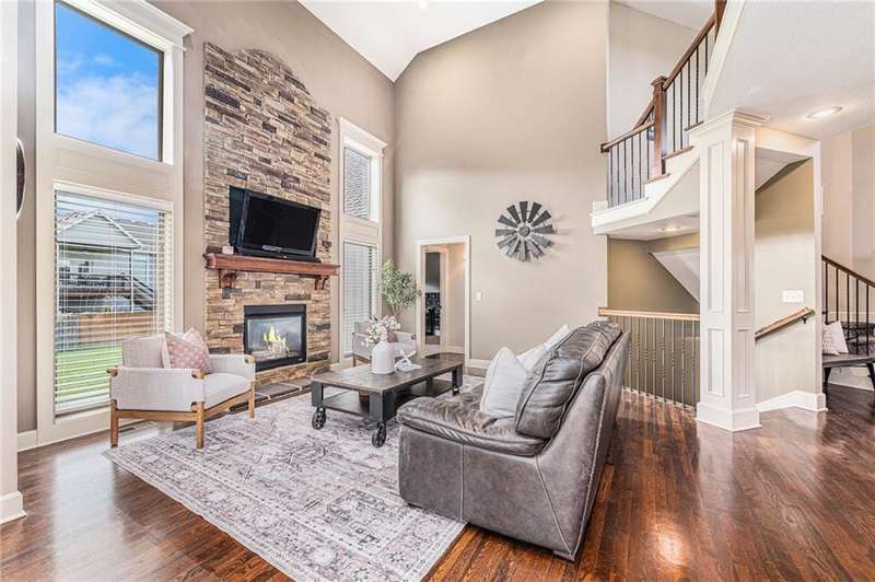 Welcome home! This beautiful 1.5-story residence offers 6 bedrooms, 5 full bathrooms, and over 4,000 square feet of comfortable living space, perfectly situated on a spacious corner lot. From the moment you step inside, youll be greeted by soaring ceilings, a grand staircase, and an open, sun-filled floor plan designed with family living in mind. The inviting living room features a stunning floor-to-ceiling stone fireplace and expansive windows that fill the home with natural light. The kitchen is a dream for any family chefcomplete with stainless steel appliances, granite countertops, a gas stove, coffee bar, walk-in pantry, and a cozy eat-in area. Step outside to the back patio overlooking a fully fenced yard, perfect for outdoor play, entertaining, or relaxing evenings at home. The main level also includes a convenient mudroom and laundry area off the kitchen, a spacious primary suite with a luxurious bath featuring a double vanity, walk-in closet, soaking tub, and separate shower, plus a second bedroom and full bathideal for guests or a nursery. Upstairs, youll find bedrooms three and four connected by a Jack-and-Jill bath, and a fifth bedroom with its own ensuite. The lower level is the ultimate hangout spacecomplete with a game area for pool or ping-pong, a family room with built-ins, and a sixth bedroom with a full bath and walk-in closet. Best of all, this home sits directly across from Stonebridge Trails incredible community amenitiespool, clubhouse, playground, and walking trailsso family fun is always just steps away. This home truly offers everything your family needs: space, comfort, and a community youll love to call home.