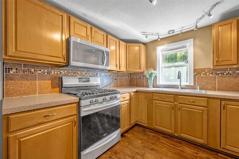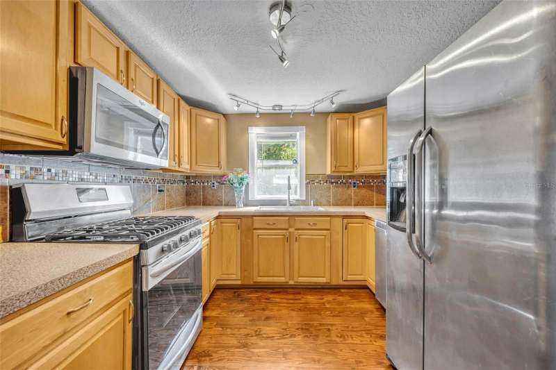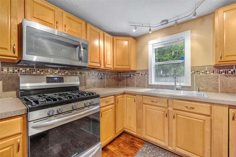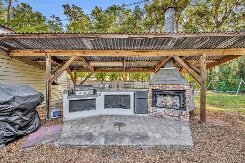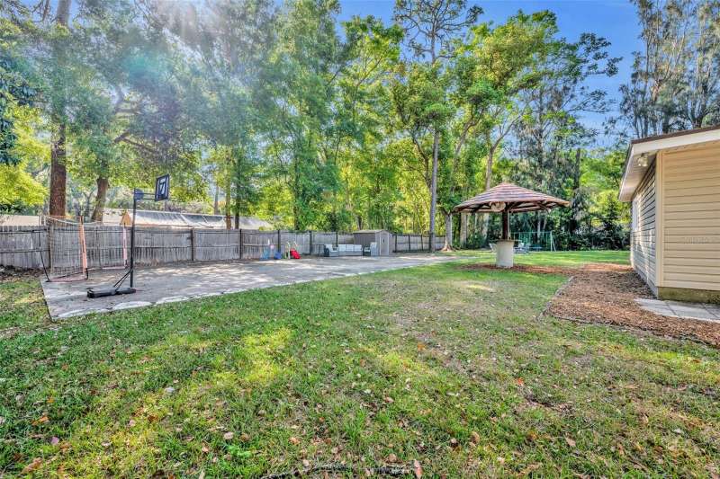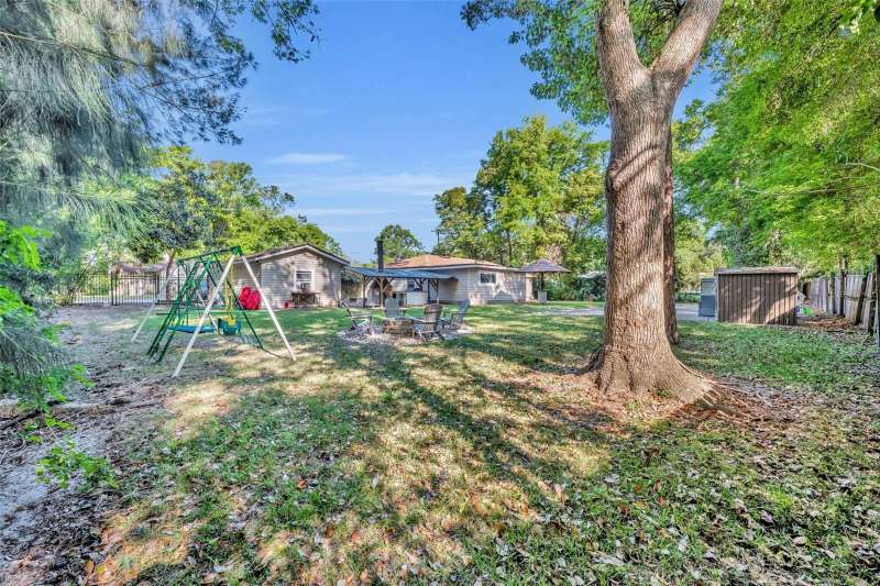 ASSUMABLE 5.6% VA LOAN (buyer does not need to be VA). BUYER CREDIT (with preferred lender) towards closing costs or rate buy down! Discover this beautiful 4-bedroom, 2-bathroom home in a prime location! Boasting a spacious primary bedroom with a large walk-in closet! This home offers a versatile split floor plan and a bright, inviting living space. The kitchen is a chef’s dream, featuring newer appliances, a natural gas range with convection oven, and a large sink overlooking the expansive .38-acre yard. The fully fenced backyard oasis is shaded by mature trees, providing endless opportunities for fun and relaxation. Entertain in style with a tiki bar and outdoor kitchen, complete with a grill and wood-burning fireplace, perfect for intimate gatherings or large cookouts. Plus, enjoy an additional fire pit for cozy evenings under the stars! This oversized lot also includes a versatile 29’ x 55’ concrete slab, ideal as a sports court or for storing your boat, RV, or other outdoor toys. The detached garage features window A/C, insulation, and office space, making it the perfect workshop, studio, or creative retreat. Additional upgrades include a new roof (2023), HVAC system (2023), and a natural gas tankless water heater. Prime location! Just minutes from Stetson University, Historic Downtown DeLand, I-4 access, beaches, Lake Mary, Orlando attractions, and airports. Motivated buyers! Don’t miss out on this incredible opportunity—schedule your showing today!