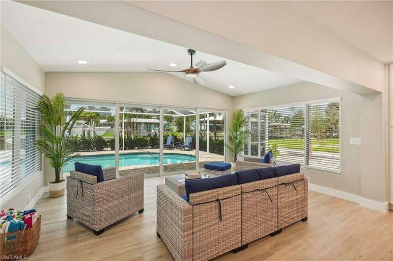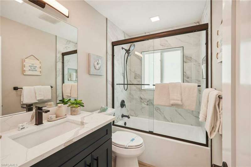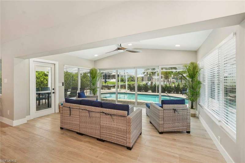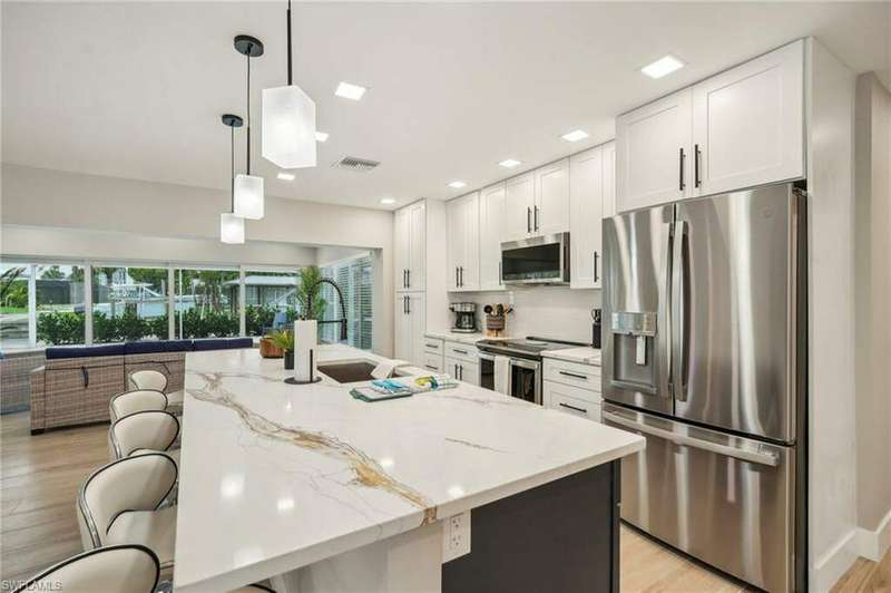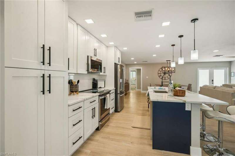CRAZY NEW LOW PRICE,SELLER IS MOTIVATED! Welcome home to this 3/2/1 waterfront pool home ready for immediate occupancy or rental income. Located directly on Estero Blvd, this home is one of only a handful of direct Gulf access properties right across the street from the white sands of Ft Myers Beach and allowing short term rentals! The entire home is new, including the roof, AC, plumbing, electrical, and fully permitted remodel. The interior features gorgeous porcelain plank tile throughout, a spacious open floor plan, custom tiled bathrooms and neutral decor. The large chef's kitchen which overlooks the main living space has bright white shaker cabinetry, stainless GE profile appliances and a huge Island with stunning quartz counters. Outside you can enjoy your large, screened pool and lanai area while watching the fish, dolphin and manatee. Also, a boater's dream! With a private dock and lift right in your back yard, you are only minutes to open water, Lover's Key, Bonita, Naples, and of course, all that Ft Myers Beach has to offer.