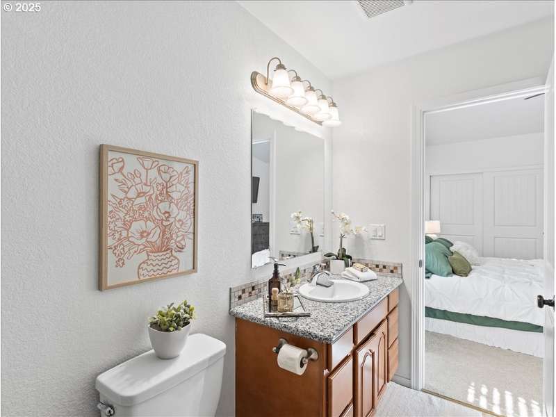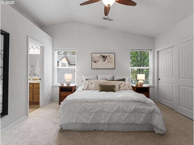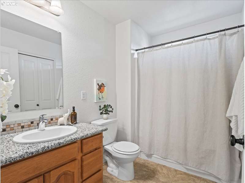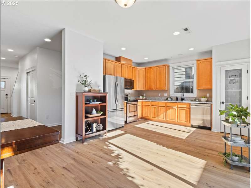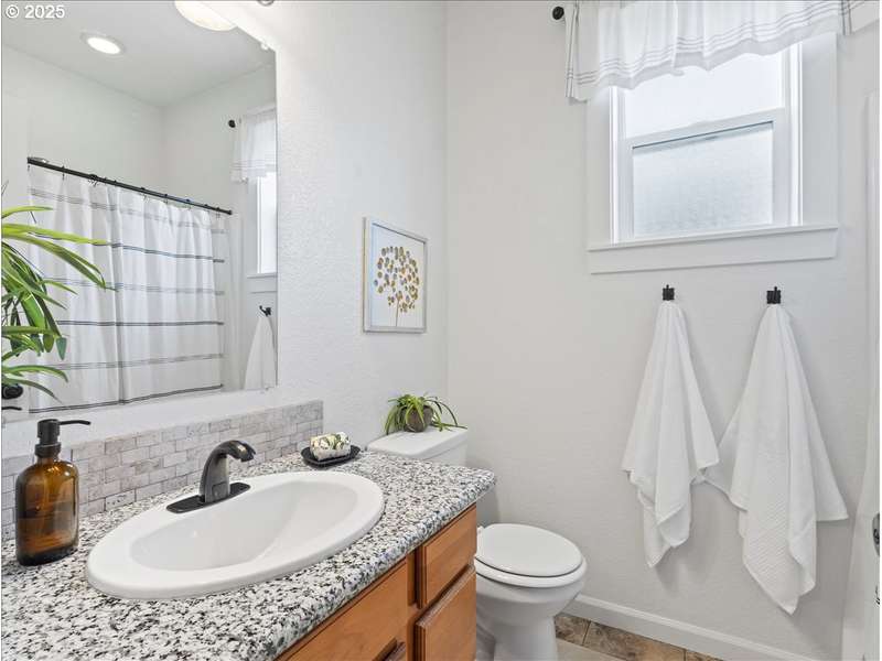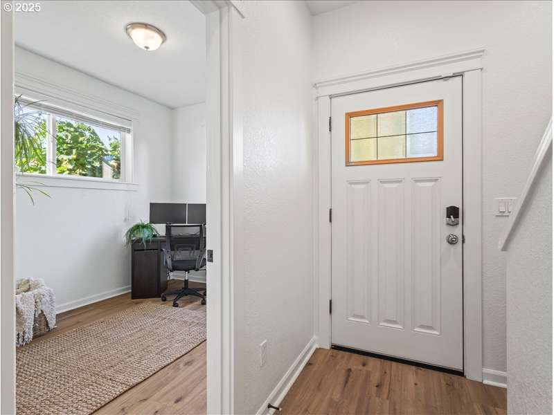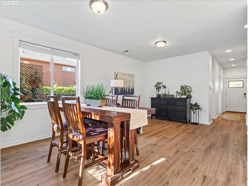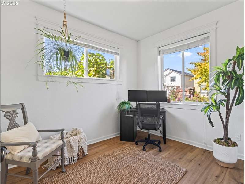 Welcome to this delightful and spacious contemporary home tucked away in a quiet neighborhood of newer homes. Offering 5 bedrooms + 3 full bathrooms, 9’ ceilings and oversized double-pane windows; It features an easy living open-concept floorplan that is filled with natural light, perfect for today’s routines and lifestyle. An expansive kitchen, equipped with stainless steel appliances, stone countertops and pantry flows seamlessly into the dining and living rooms creating the ideal setting for gathering or entertaining. Upstairs, you will find four generously sized bedrooms, including a bright and airy primary suite with a vaulted ceiling in addition to a full hall bath complete with an enclosed laundry area. A versatile office space/bonus room with a closet located on the main level as well as a full bathroom offer the potential for a main-floor bedroom or flexibility for guests. Outside, you will find a fully fenced, low-maintenance yard and charming slab patio—perfect for morning coffee or evening relaxation. Recent updates include new luxury plank flooring on the main level and carpet upstairs, making this home truly move-in ready. Just blocks from Gilbert Heights Park and Elementary School. NO HOA. This SE Portland home really is a must-see and priced to sell! [Home Energy Score = 5. HES Report at https://rpt.greenbuildingregistry.com/hes/OR10242535]