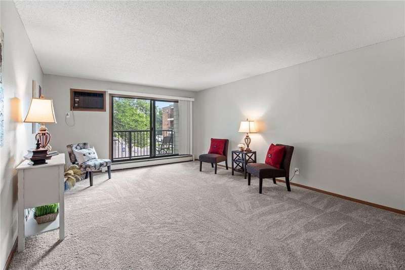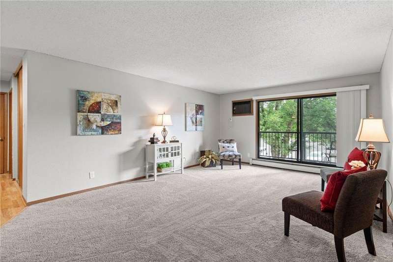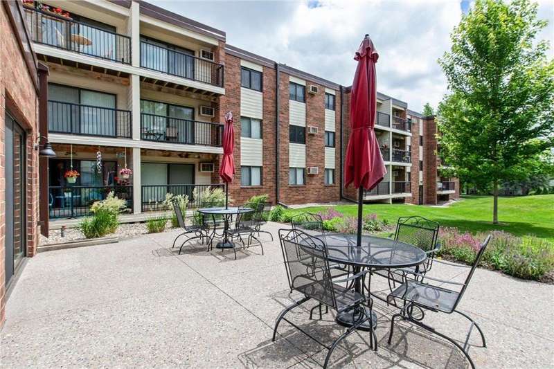 Great opportunity to enjoy affordable living in prime Arden Hills area. This condo is situated in a serene setting of mature trees with nature views, but with the ability to easily walk to shopping and restaurants. Enjoy easy freeway access for travel or quick trips to either downtown. The unit has been updated with new carpet, fresh paint, new light fixtures and recently had a fabulous walk-in shower installed in the main bath. You'll enjoy the efficient kitchen which flows into a dining area, both feature easy-care wood-look laminate flooring. The spacious living room boasts lots of natural light coming from the wall of sliding doors that lead out to your private deck. A spacious bedroom also has fresh paint, new carpet and nice natural light from a large window. An updated bathroom features a beautiful walk-in shower, new lighting and new mirror. You'll love the nicely appointed common areas, including a beautiful Community Room, wonderful outdoor patio surrounded by beautiful gardens and nature views, as well as a nicely equipped exercise room and laundry room. There is also a private storage space and a heated underground parking garage. Come check this opportunity out - a great place for those wanting the ease of condo living - coupled with affordability and located in a wonderful setting!