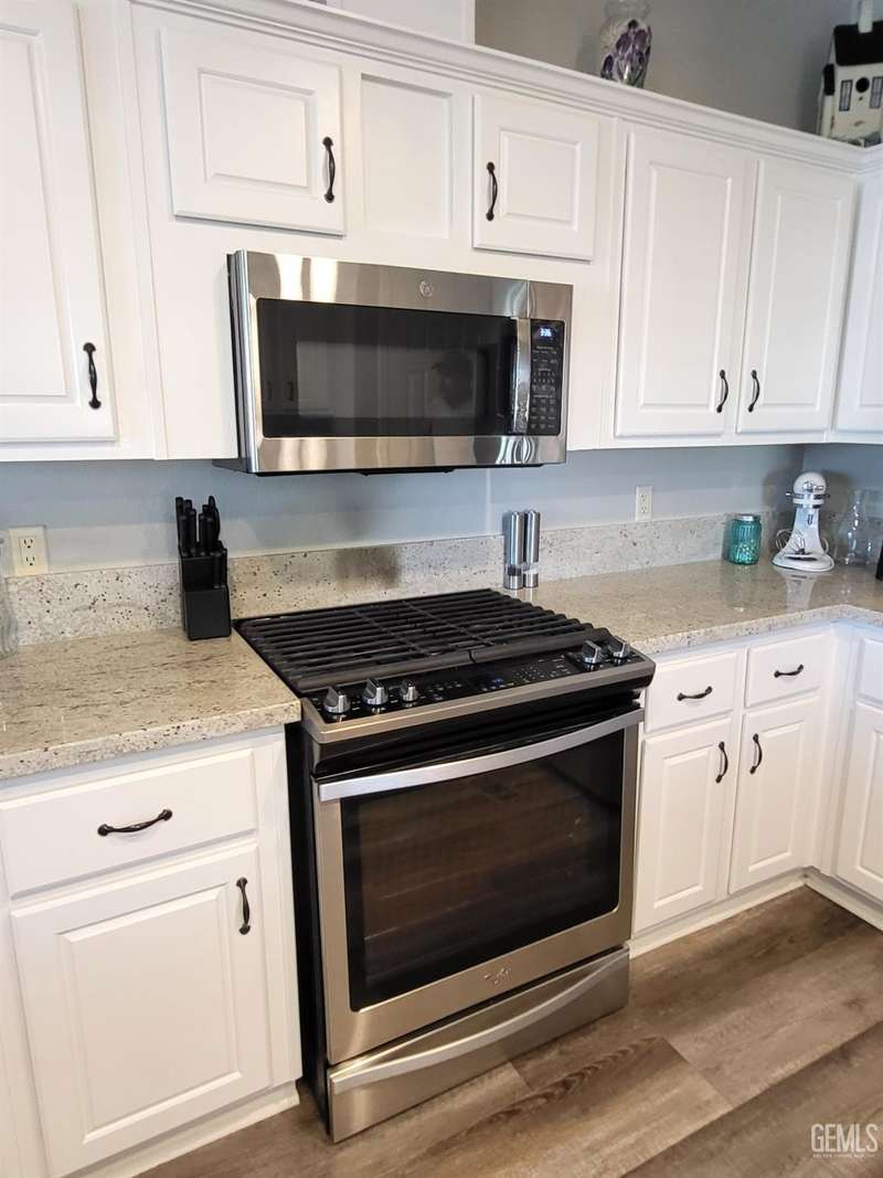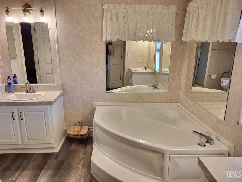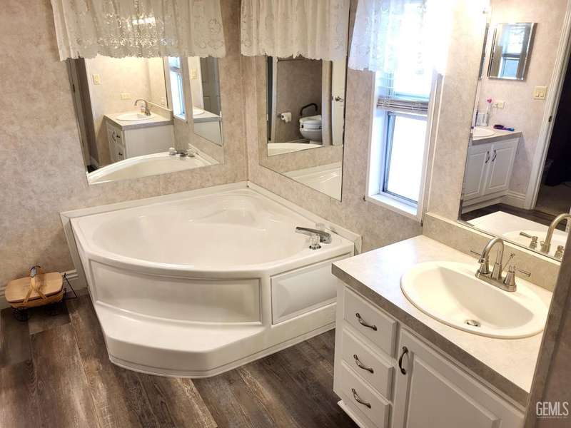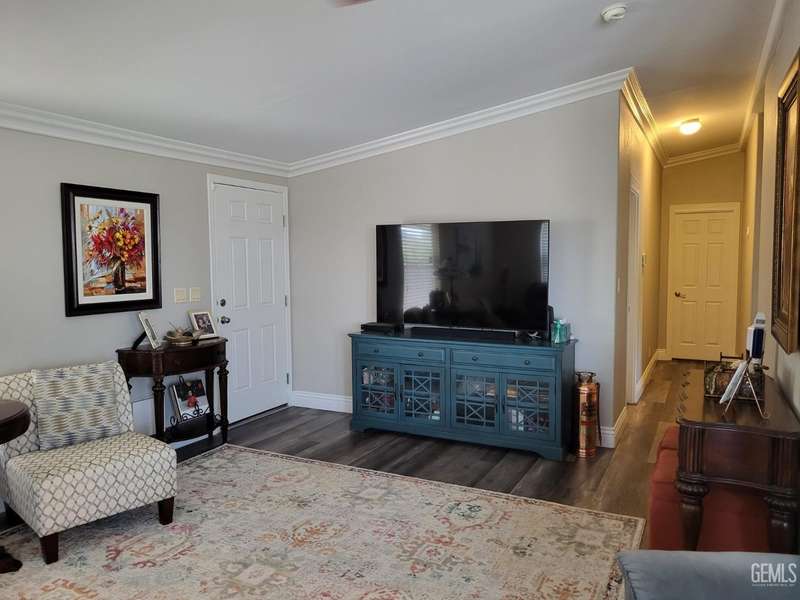 Pride of ownership in this lovely 2+2 manufactured home in a quiet 55+ community! Offering updates that include granite countertops in the kitchen, crown molding and vinyl flooring. Enjoy the large open great room with vaulted ceilings, breakfast bar, spacious kitchen with white cabinetry, stainless steel appliances. separate shower, tub and his and hers double vanity sinks in the owner's bathroom, and indoor laundry. Central heating and a/c. Large backyard with fruit trees, 2 walls in the back yard are block wall fencing. Ready for quick escrow!