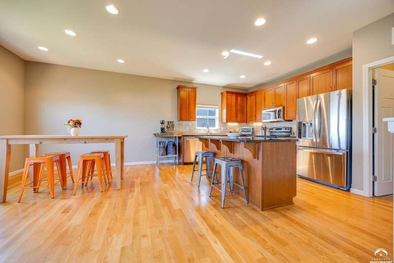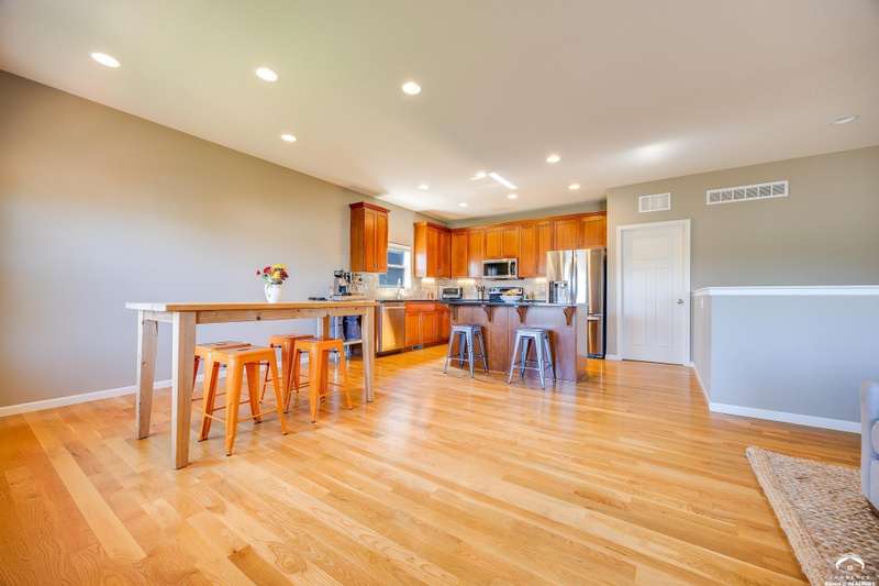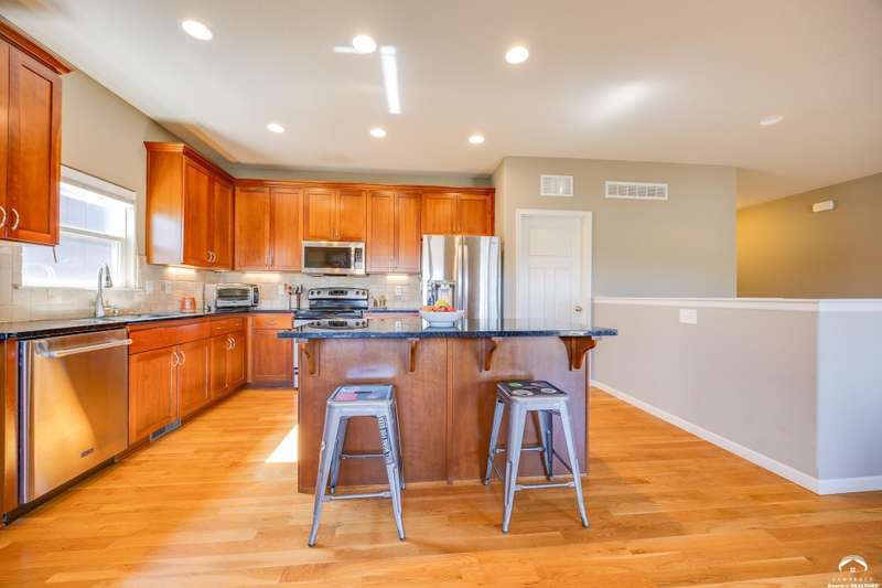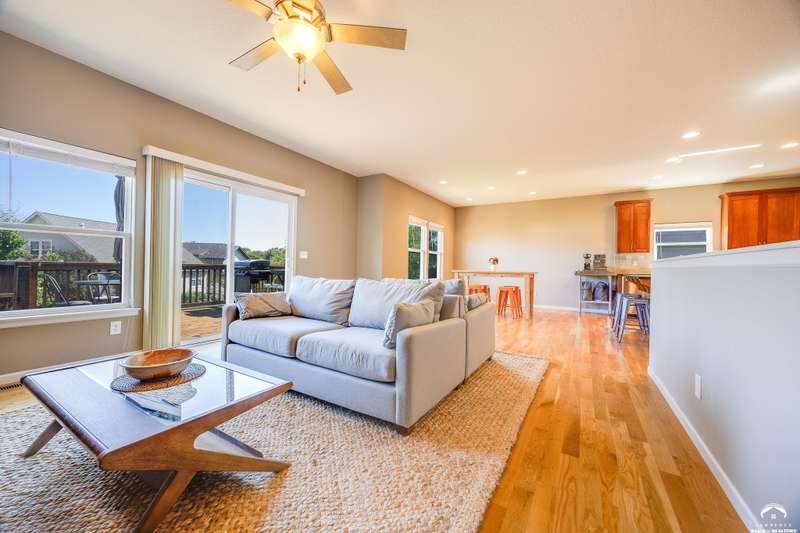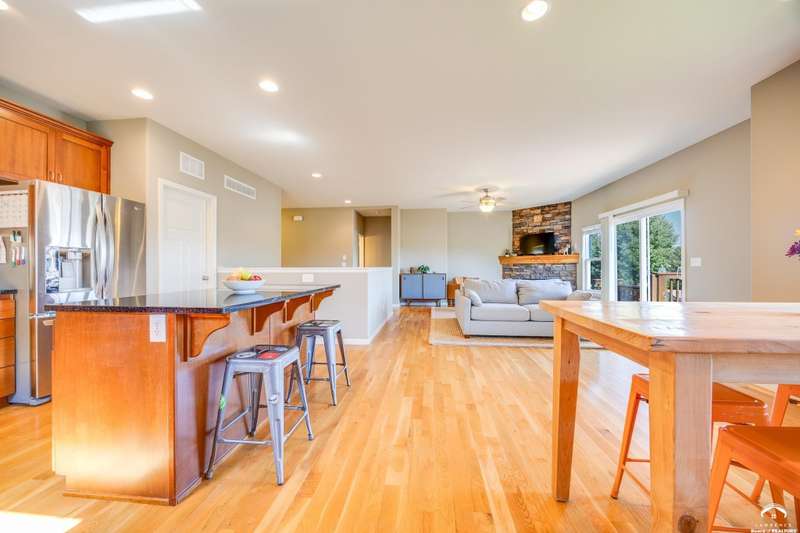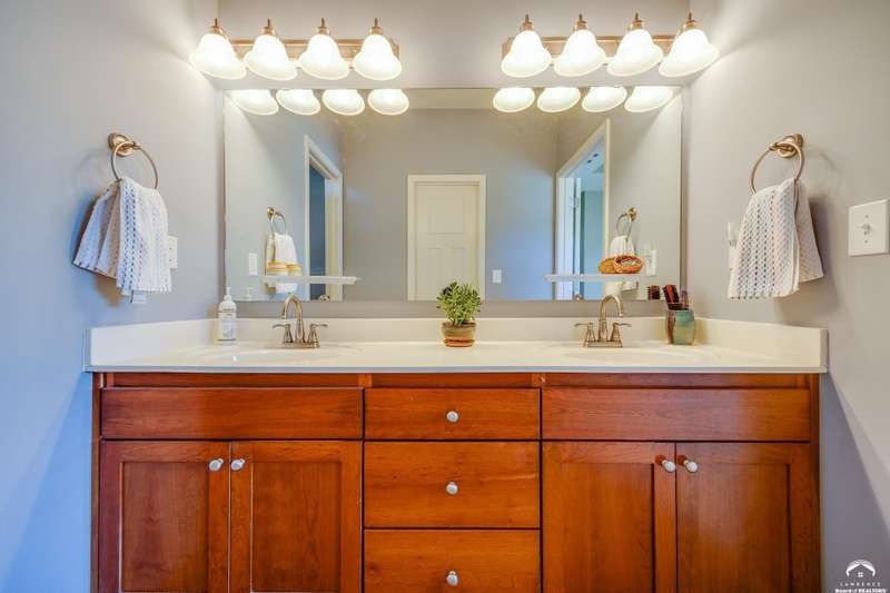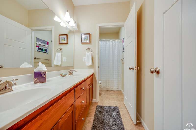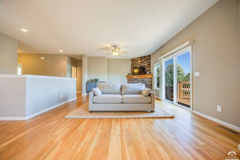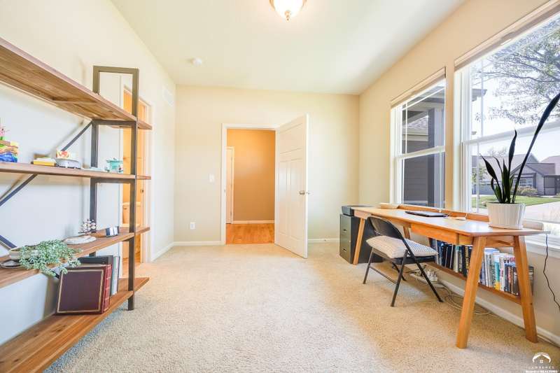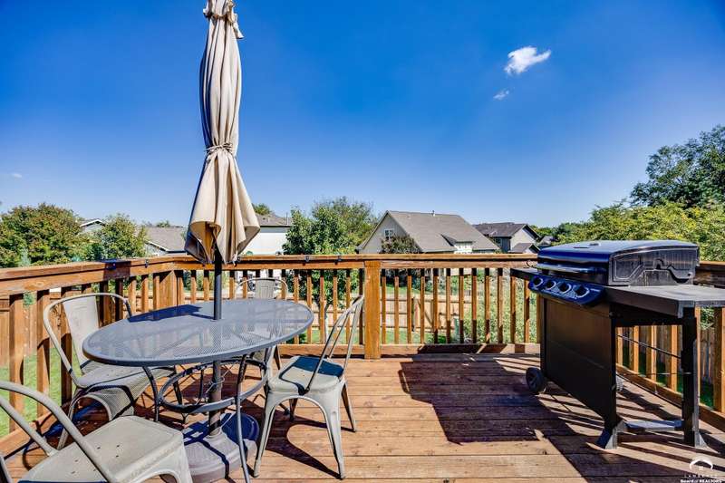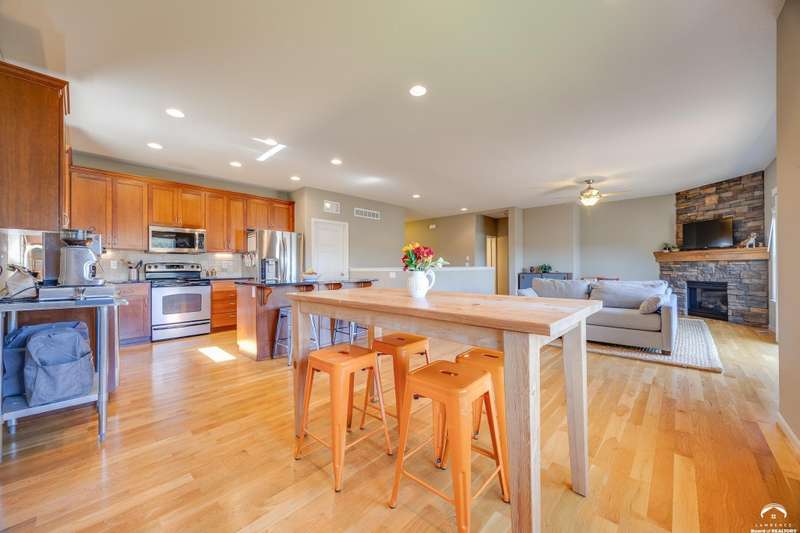 The Patrick plan by Highland Construction in the desirable Green Tree Subdivision, a fantastic neighborhood close to Langston Hughes Elementary, DeVictor Park, and Sports Pavilion Lawrence at Rock Chalk Park with easy access to K10 and I70 commuter routes. Main level living in this tried-and-true open concept floor plan on a walkout basement. 3 car garage. Nicely appointed deck that overlooks the backyard that has been recently enclosed with a wooden privacy fence. Well maintained and nicely landscaped with recent tree trimming. This is a great home in a great location. Schedule a time to see it today!