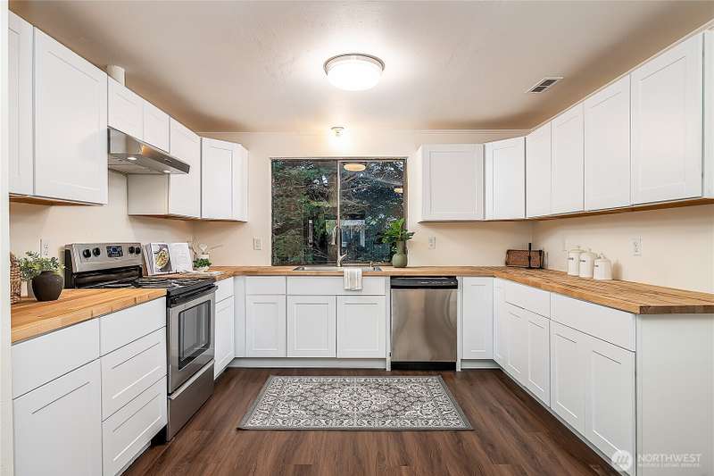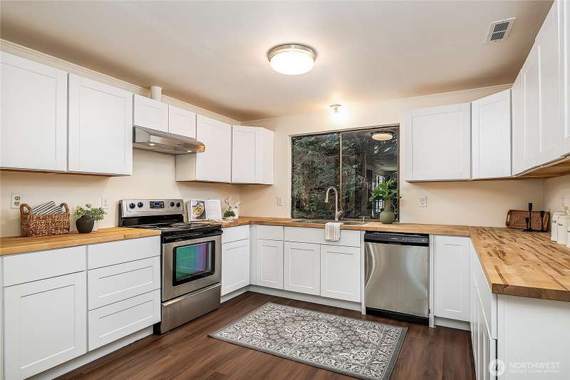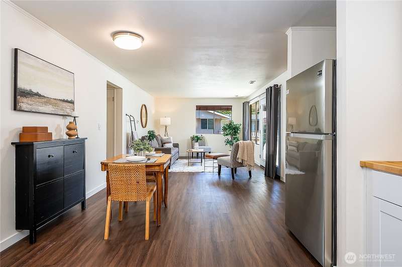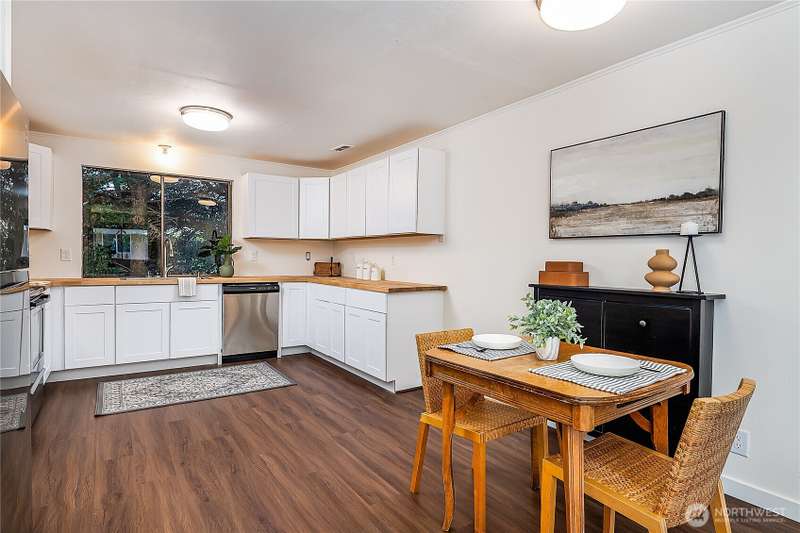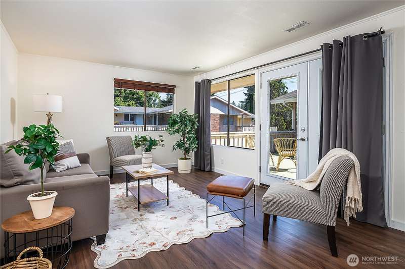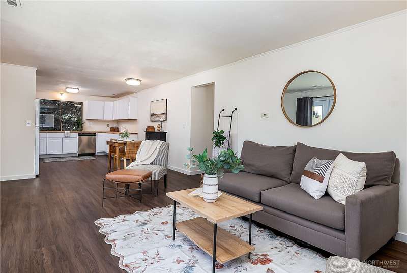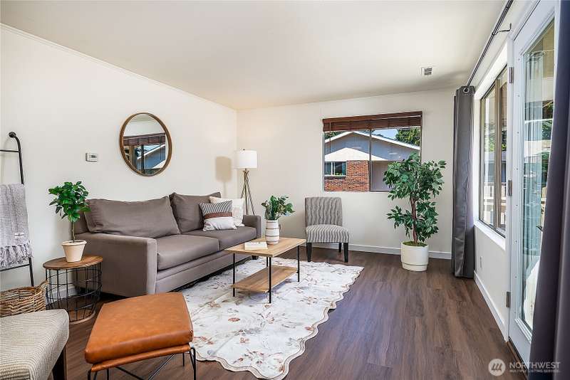 Step into sun-filled Edmonds living where thoughtful updates meet everyday comfort. The spacious open layout flows seamlessly onto a private deck perfect for summer BBQs and morning coffee. A brand-new kitchen shines with sleek cabinets, countertops and appliances, complemented by fresh flooring, trim, and paint throughout. Enjoy a dedicated laundry room, private garage with extra storage and an additional parking space for guests. Tucked in a quiet community, you’re minutes from the waterfront, light rail, and Alderwood Mall, with restaurants, cafes, and parks within walking distance. Walk to top-rated Edmonds schools and the nearby college while staying connected with quick I-5 access. This is the Edmonds lifestyle you’ve been waiting for
