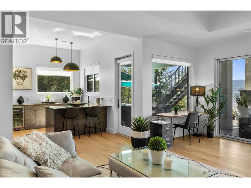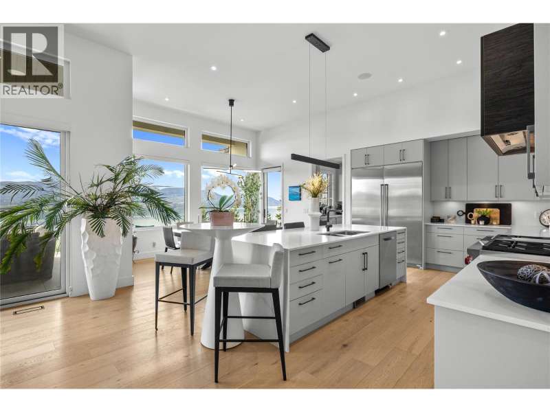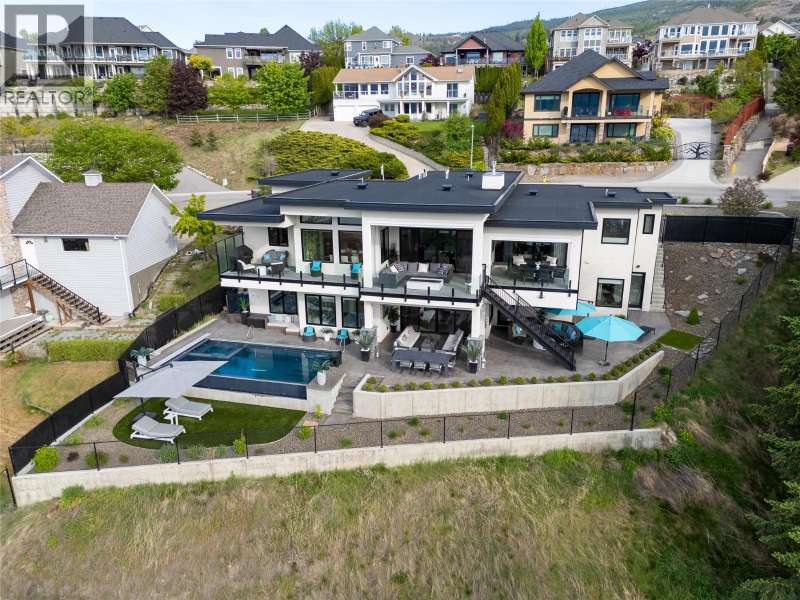 WELCOME to this exquisite 4641 sq ft walk-out rancher, perfectly situated to offer spectacular views of the lake, city and valley. This luxurious home features resort-style indoor- outdoor living. Enjoy the infinity edge swimming pool and hot tub complemented by expansive deck spaces on both levels- providing perfect spots for entertaining or simply soaking in the views. Inside you will find a gym area, theatre room, wet bar and temp controlled wine room as a few ""added extras"". This 2021 built home boasts 4 generous sized bedrooms all with lake views. The main floor primary bedroom with large walk in closet and laundry and 5 piece ensuite is designed for age in place living providing comfort and convenience. A spacious 3 car garage offers plenty of room for your vehicles and toys and a heated drive. Upper and Lower floors have in floor radiant heat. Do you have a cook in the family? WELL- this kitchen is truly an entertainer/chefs delight with a large servery. A fully fenced yard with pet friendly synthetic turf. This truly is an exceptional home- where every detail has been carefully considered for your utmost comfort. There's so many details that it truly needs to be seen. * measurements taken from the I guide floor plan in supplements (id:7434)