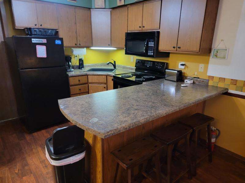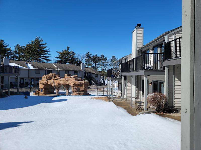 Fully furnished ground floor condo near office pools and recreation center. Large master suite w/jetted tub, TV and full size newer washer and dryer. Front entrance w/parking in front of condo. Back entrance with separate patio. Two working fireplaces. Enjoy the two beaches, full sized indoor pool, sauna, hot tub and locker rooms. Outdoor pool w/ waterfall, slide and kids water swing pad. Property is close to major attractions, entertainment, restaurants and walking trails. Great vacation spot or year round residence. Great renal opportunity through the in-house rental program to of-set cost of ownership.