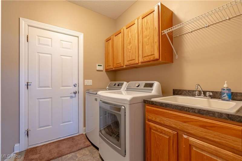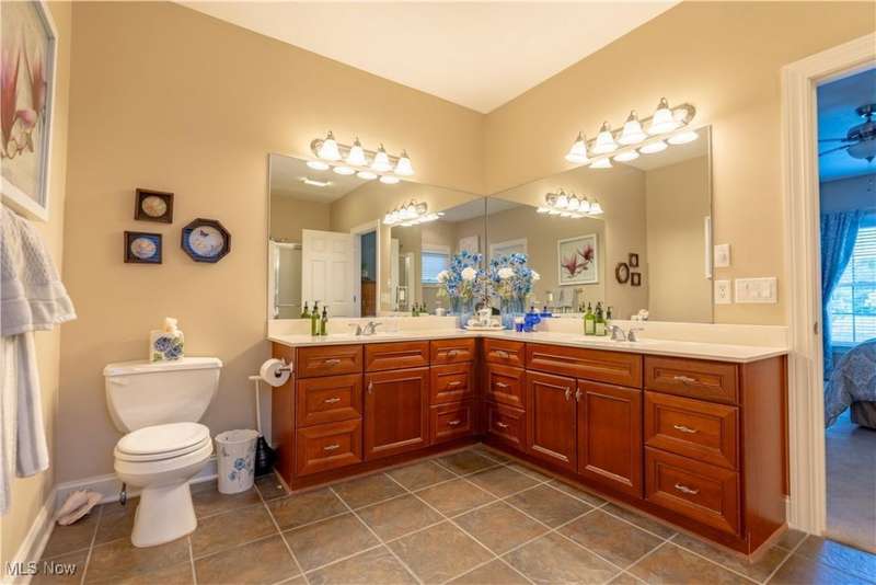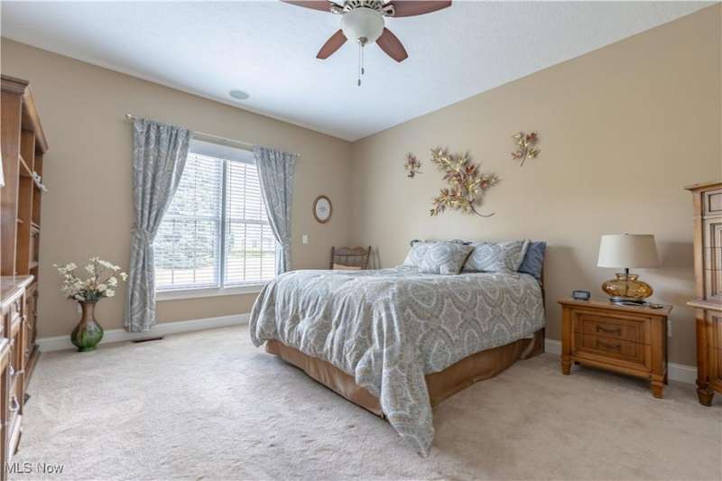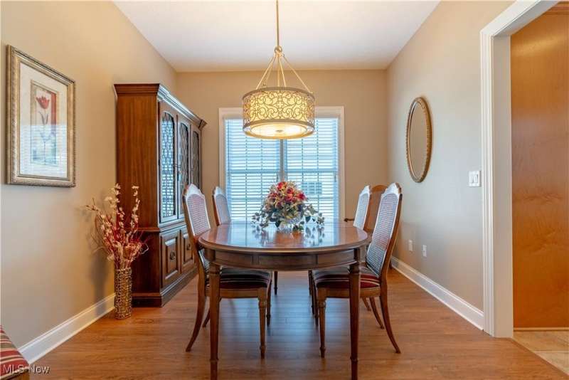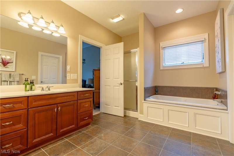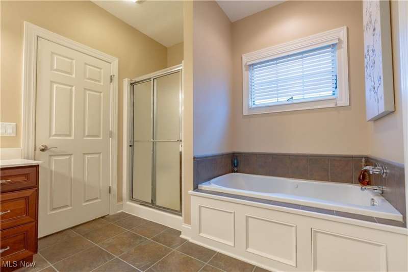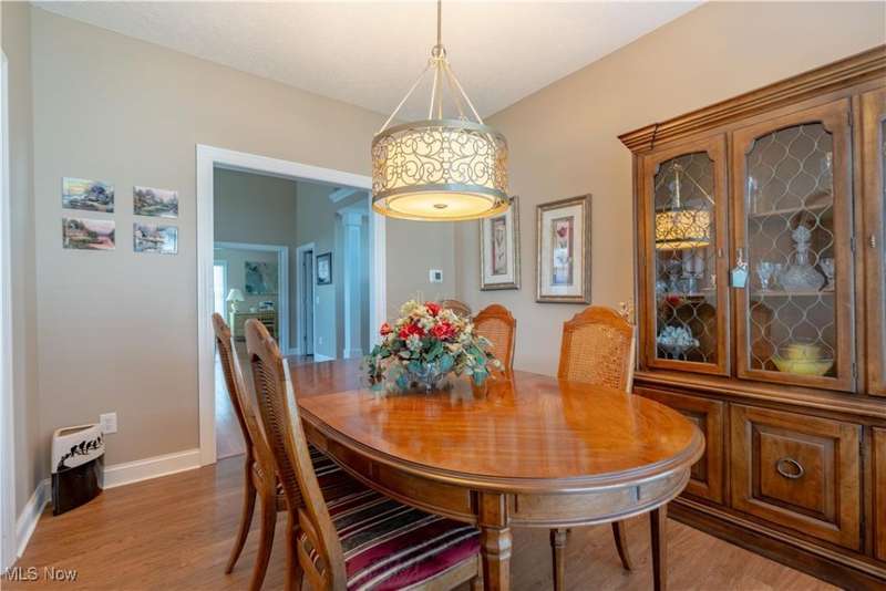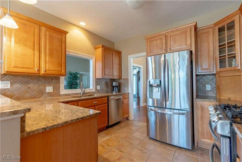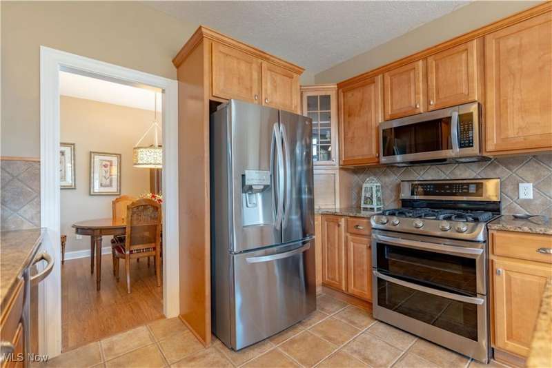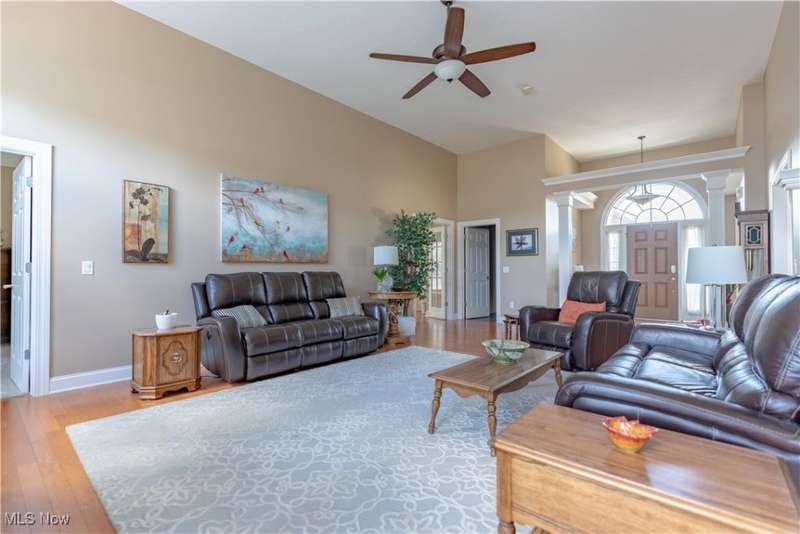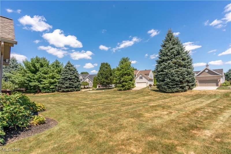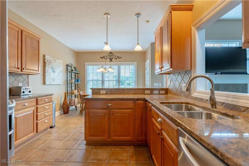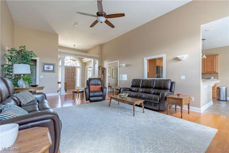 This charming ranch-style home offers a perfect blend of comfort and style with three bedrooms and two full bathrooms. The inviting great room features 10-foot ceilings, hardwood floors, and an elegant pillared entryway, all accented by crisp white trim and a cozy gas fireplace. The open layout flows seamlessly into the large eat-in kitchen, complete with a breakfast bar, granite countertops, stainless steel appliances, hickory cabinets, and a stylish tiled backsplash. Adjacent to the kitchen is a formal dining room, ideal for entertaining. The large primary suite is a true retreat, boasting a private bath with a separate jetted tub, shower, dual sinks with a granite vanity, and a generous walk-in closet. Two additional bedrooms provide ample space, with the third bedroom offering the flexibility to be used as an office. A second full bathroom completes the layout. The home's thoughtful design includes a convenient split-bedroom layout, ensuring privacy. A first-floor laundry area is located just off the garage for added convenience. Outside, the backyard has a composite deck, perfect for relaxing or hosting guests. The large unfinished basement is ready for your customization, featuring plumbing for an additional bath, glass block windows, and a radon mitigation system. The HVAC was replaced in 2023, and the roof was replaced in March 2023. Originally built as a free-standing villa, the HOA was disbanded and integrated into the neighborhood HOA years ago.
