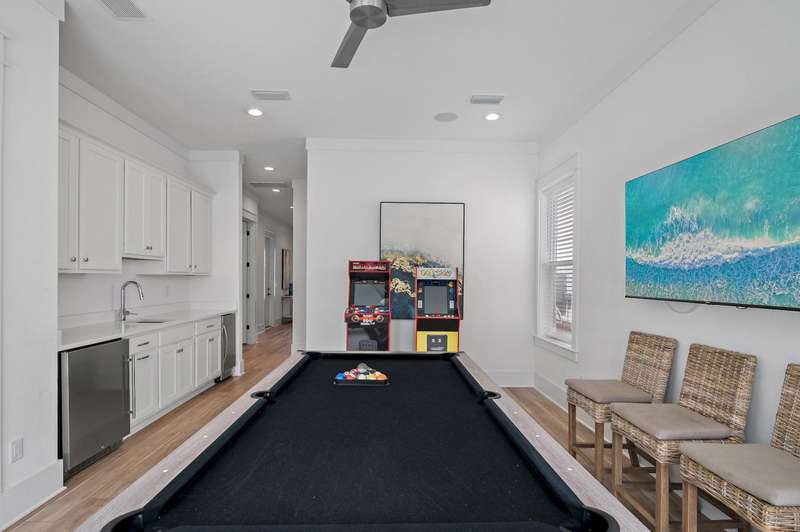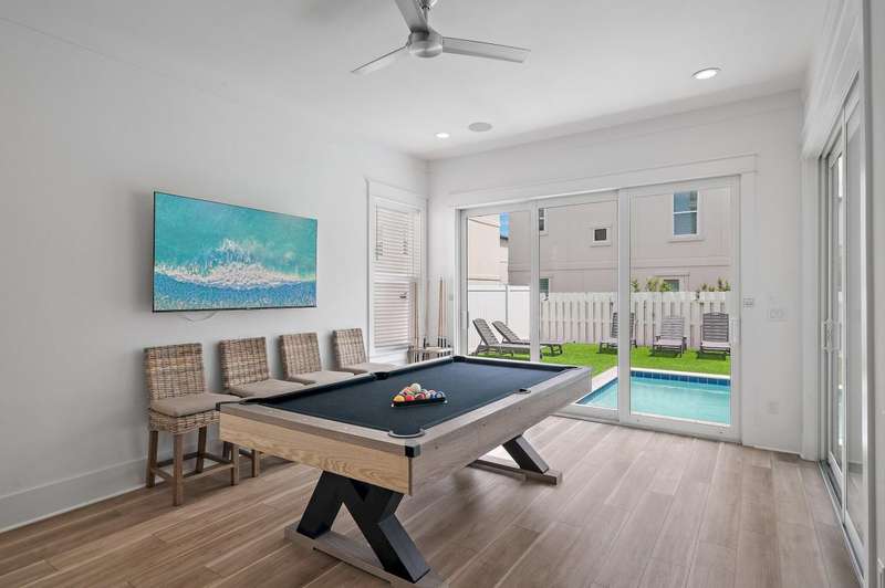 Tucked away in the Estates at Hidden Palms, this remarkable three-story home seamlessly combines opulence and comfort. Completed in 2022, this expansive residence features seven bedrooms and 6.5 bathrooms, complemented by a private pool. The house encompasses 4,100 square feet, imbuing the space with an inviting and radiant atmosphere.Outside, you'll find two one-car garages, a fenced backyard with a grill area, a glistening pool, and outdoor seating for sun-soaked relaxation. The covered patio beckons for al fresco dining and unwinding. Indoors, entertainment takes center stage with a game room featuring a mini fridge, icemaker, pool table, and entertainment system?all conveniently adjacent to the pool.