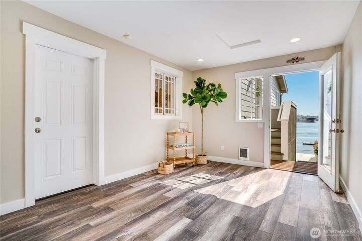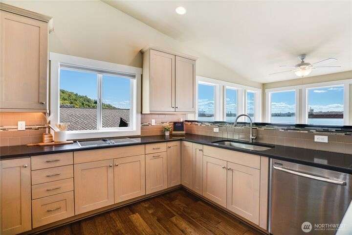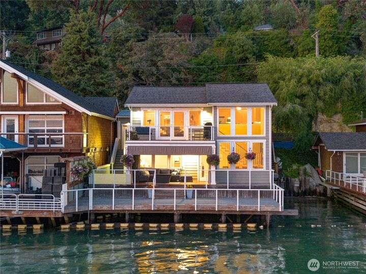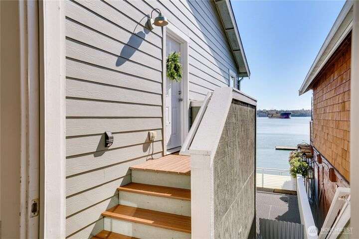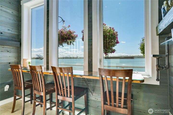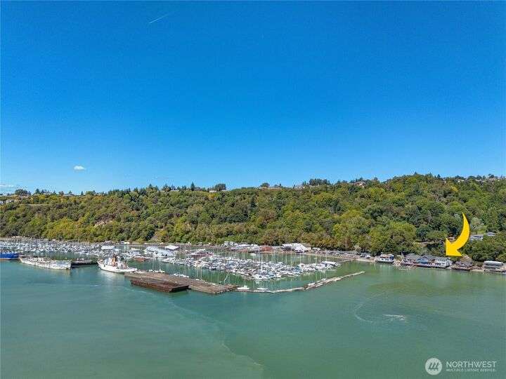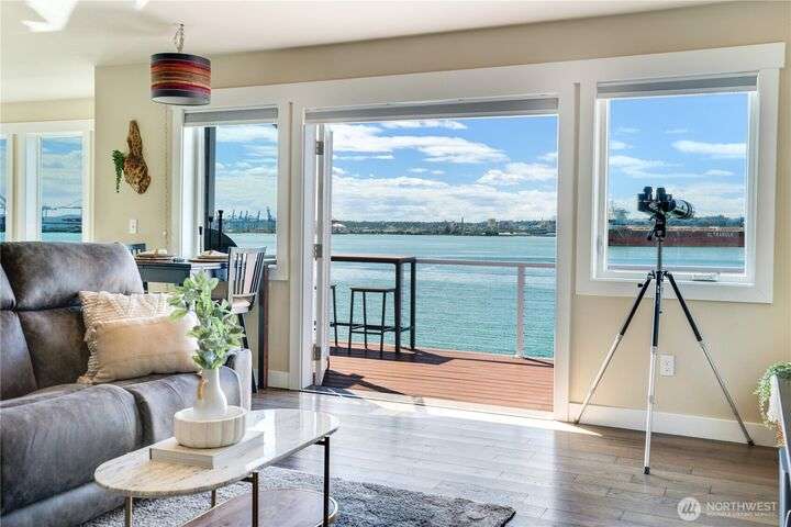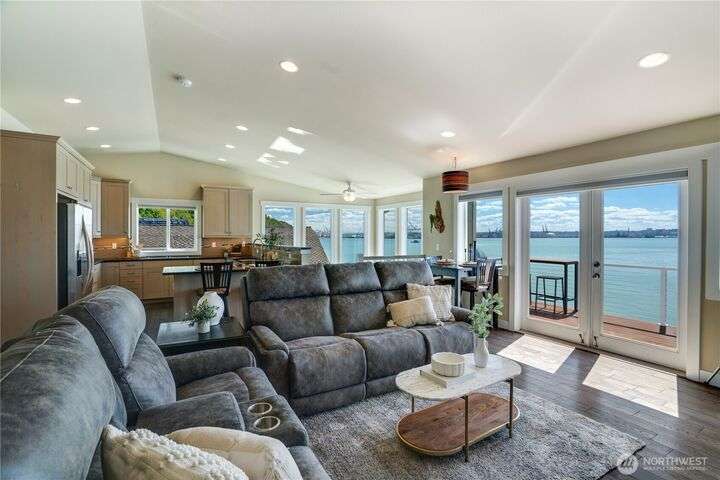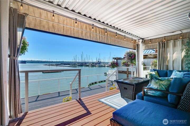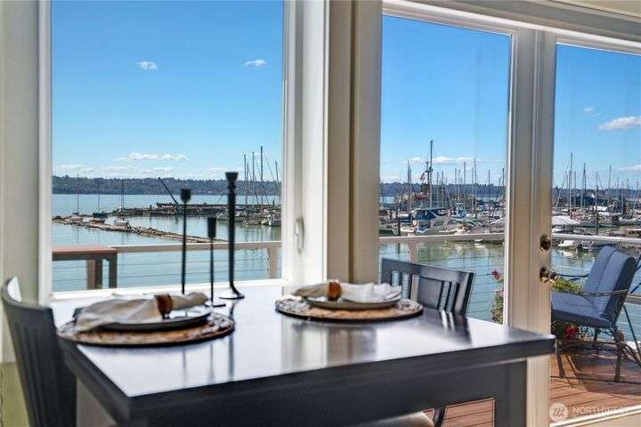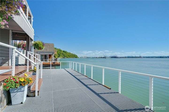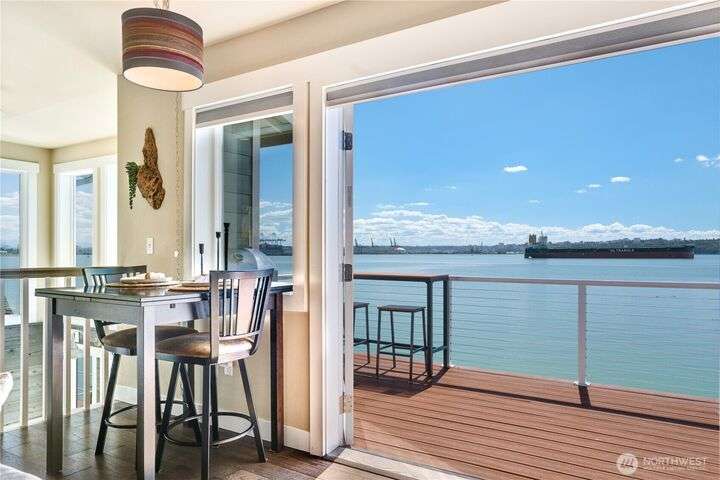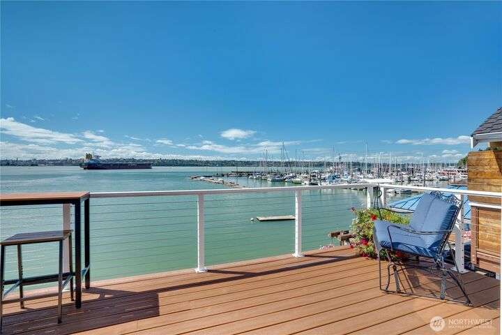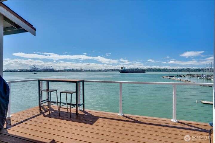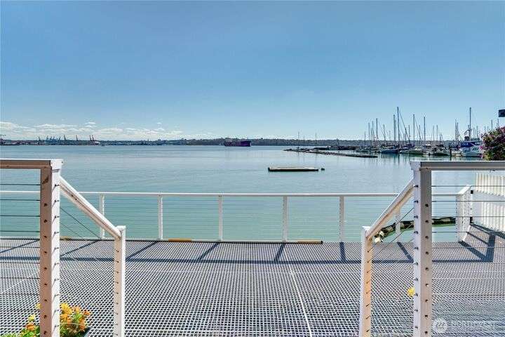 This over-the-water haven is a rare retreat with 44 ft of waterfront on Commencement Bay. Built in 2013 & filled with coastal character + comfort; vaulted ceilings, hardwoods, and walls of windows that invite in sweeping views of Puget Sound, downtown Tacoma, & colorful sunsets. Watch whales, seals & sailboats drift by as you relax or gather with friends around the custom teak bar. Thoughtfully designed with 2 primary suites, walk-in closets & en suite baths, plus a 3rd main level bedroom & full bath, 2 car garage & under home storage. Multiple decks w/direct beach access make it easy to enjoy the water, while nearby marina moorage & local dining add to everyday ease. A fantastic condo alternative w/low maintenance & no dues. Pre-inspected!