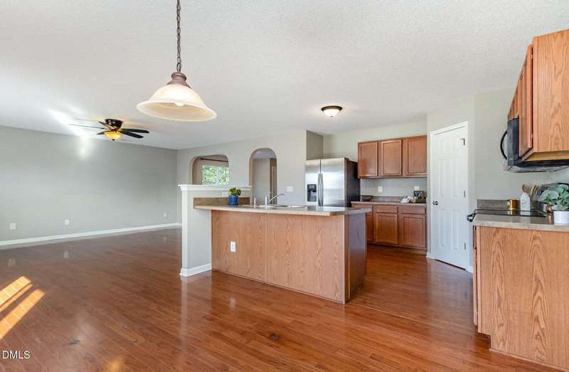 WOW! A blend of country living with convenient access to shopping and major highways, including I-40. The home features a welcoming front porch, perfect for enjoying a book, and a back patio for cool evenings. The backyard is fully fenced. On the main floor, you'll find a bedroom, a full bathroom, a dining area, an open family room, kitchen, and breakfast nook. Upstairs, there's a versatile flex space (bonus room), an upstairs laundry room, two additional bedrooms, and another bathroom. The spacious primary suite with ample closet space is also located on this level. This home has a nice flow.
