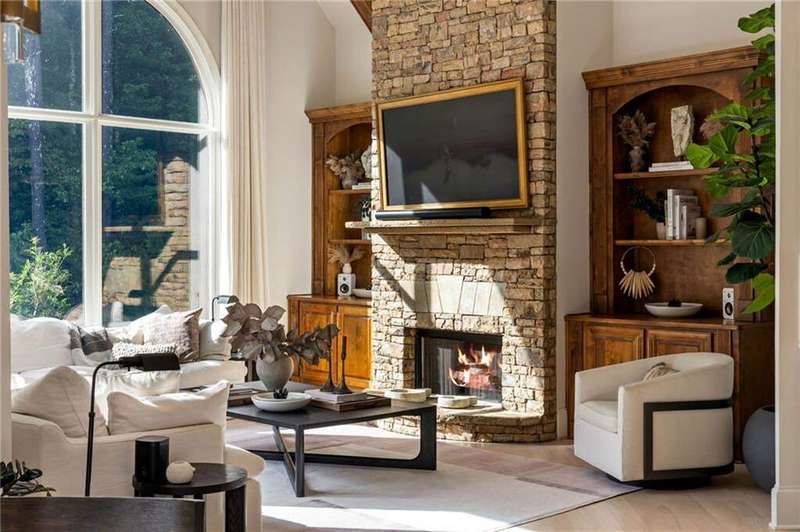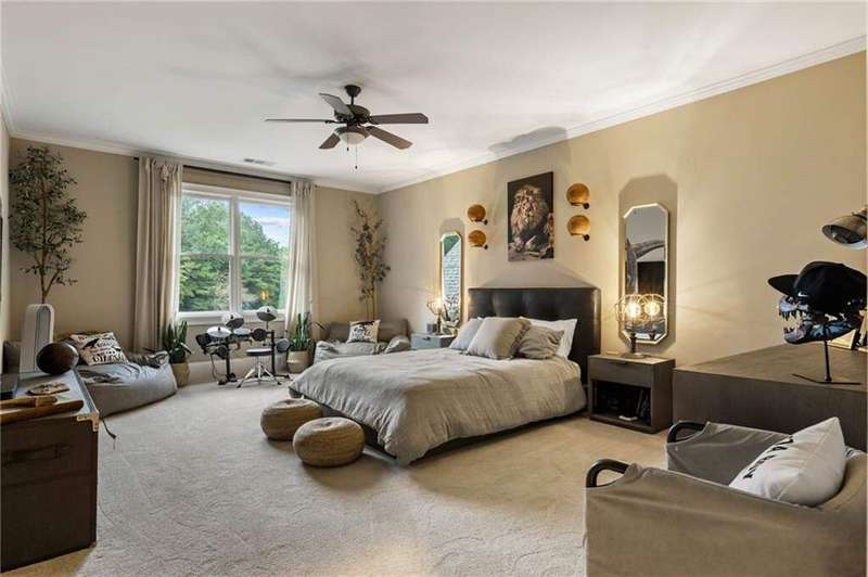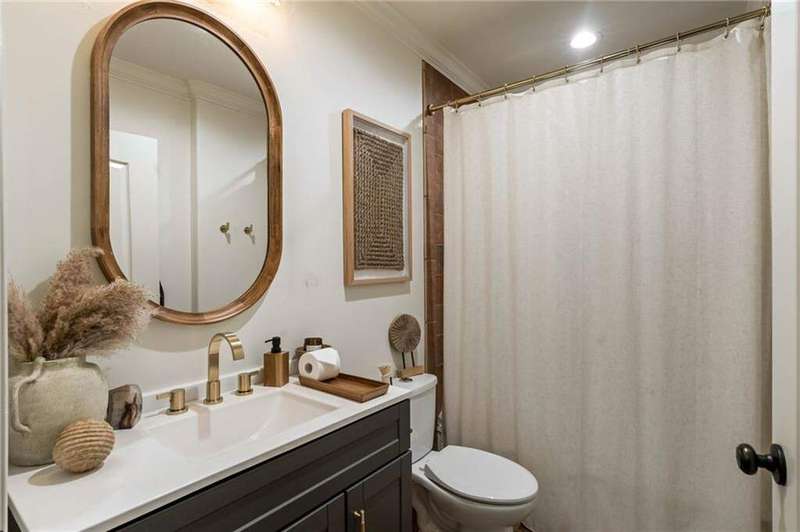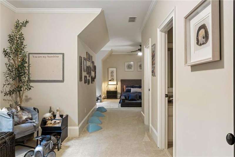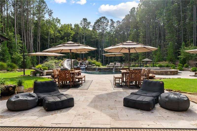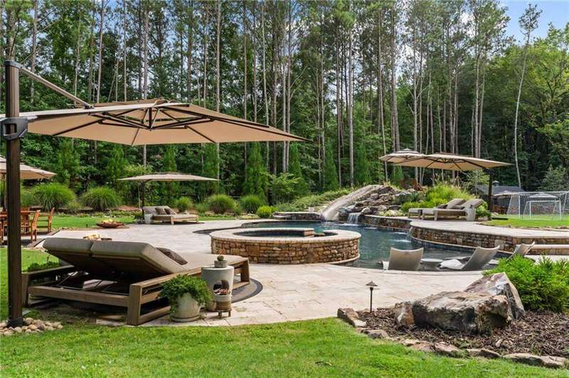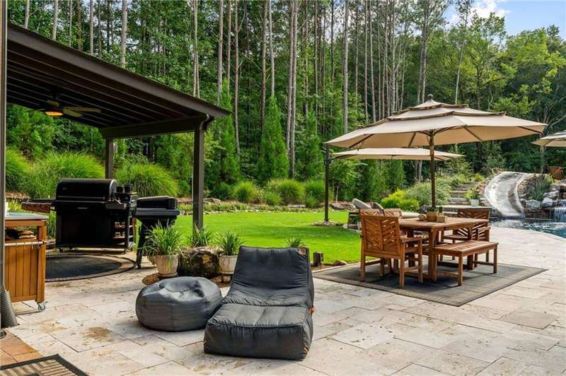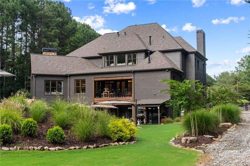 Tucked within a gated enclave and offering the rare blend of a sought-after Alpharetta address and low Cherokee County taxes, this stunning modern cottage-style estate is a true lifestyle property. Set on a beautifully landscaped lot, the exterior stuns new rock pathways, and a full yard transformation including a leveled, aerated backyard perfect for soccer play. Outdoor living is redefined with a heated saltwater pool featuring a blue light system, waterslide, and 10-person spa, paired with a round steel firepit, 18-speaker sound system with in-ground subwoofers, raised garden beds, firepits, and expansive patios for entertaining. Inside, the light-filled home features refinished Ashwood floors, fresh cedar accents, and over $100,000 in Restoration Hardware lighting. A Control4 smart home system integrates sound, lighting, hardwired cameras, and more. The open chef's kitchen is equipped with Sub-Zero, Wolf, and Miele appliances, plus double ovens and a walk-in pantry. Custom window treatments and built-in garage storage remain. The home boasts 7 total bedrooms, including a serene main-level primary suite with a gas fireplace. Upstairs offers four large bedrooms and the terrace level features two additional suites (one with separate entrance and kitchenette), a theatre, game room, and gym with sauna, all complemented by secondary laundry and ample storage. Experience elevated, turnkey living, just minutes from Milton and downtown Alpharetta.