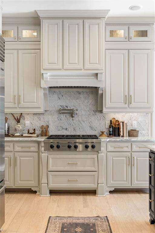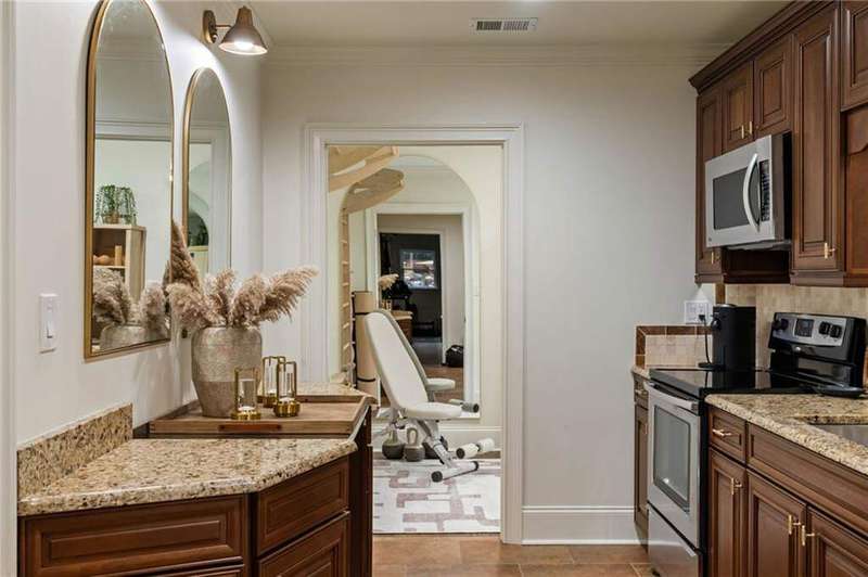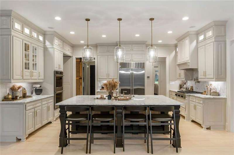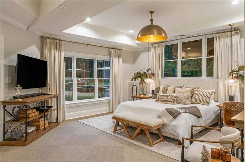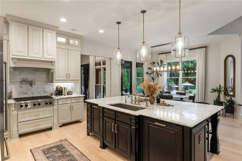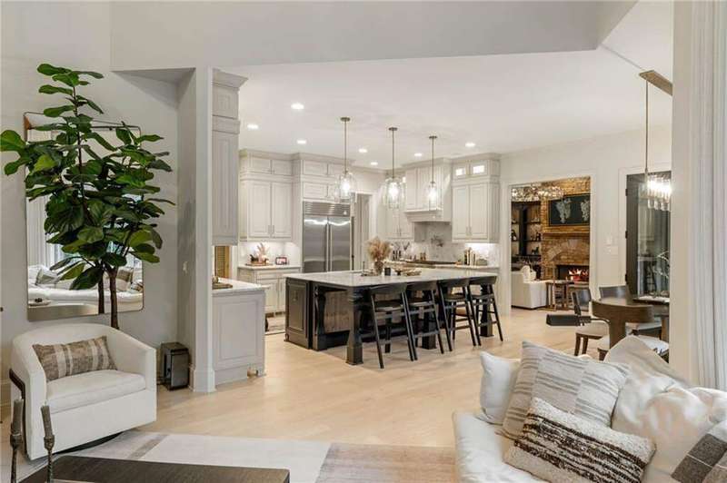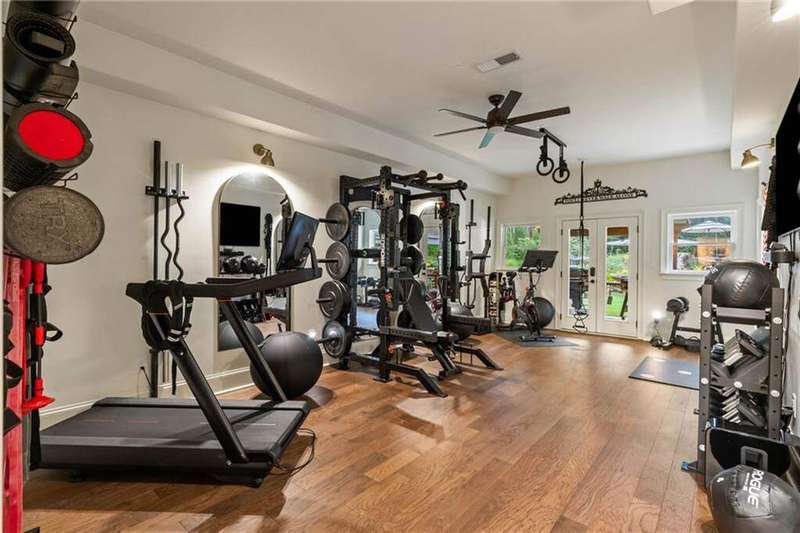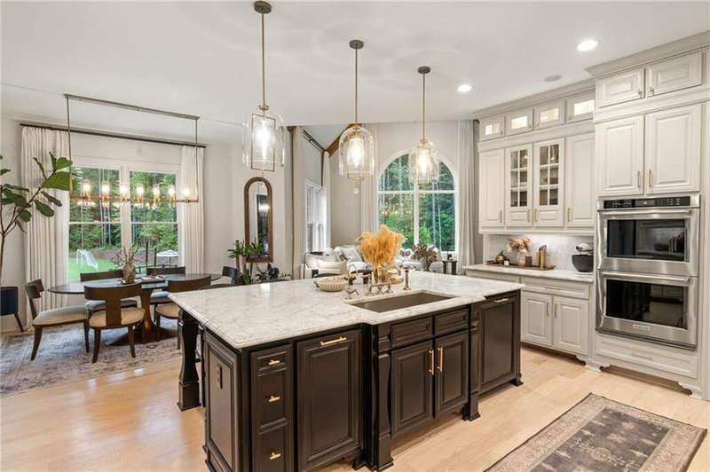 Tucked within a gated enclave and offering the rare blend of a sought-after Alpharetta address and low Cherokee County taxes, this stunning modern cottage-style estate is a true lifestyle property. Set on a beautifully landscaped lot, the exterior stuns new rock pathways, and a full yard transformation including a leveled, aerated backyard perfect for soccer play. Outdoor living is redefined with a heated saltwater pool featuring a blue light system, waterslide, and 10-person spa, paired with a round steel firepit, 18-speaker sound system with in-ground subwoofers, raised garden beds, firepits, and expansive patios for entertaining. Inside, the light-filled home features refinished Ashwood floors, fresh cedar accents, and over $100,000 in Restoration Hardware lighting. A Control4 smart home system integrates sound, lighting, hardwired cameras, and more. The open chef's kitchen is equipped with Sub-Zero, Wolf, and Miele appliances, plus double ovens and a walk-in pantry. Custom window treatments and built-in garage storage remain. The home boasts 7 total bedrooms, including a serene main-level primary suite with a gas fireplace. Upstairs offers four large bedrooms and the terrace level features two additional suites (one with separate entrance and kitchenette), a theatre, game room, and gym with sauna, all complemented by secondary laundry and ample storage. Experience elevated, turnkey living, just minutes from Milton and downtown Alpharetta.