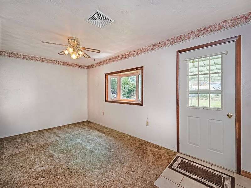 Charming Ranch Retreat. Welcome to your serene sanctuary! This delightful ranch home is nestled on two spacious lots, accessed via a private drive, offers peace, privacy, and ample room to grow. Inside, you'll find hardwood floors, a cozy living room, and two comfortable bedrooms, including a main bedroom suite with a full bath and generous closet space. The eat-in kitchen and formal dining room flow seamlessly to a covered patio, perfect for entertaining or relaxing while enjoying the private level backyard. Downstairs, the expansive lower level offers endless possibilities?whether you dream of a home gym, media room, or guest suite. There's a massive open area, a large laundry space, and a separate storage room, ready for your finishing touches. Additional highlights include newer roof, providing peace of mind and long-term value. Surrounded by natural beauty yet conveniently located, this home is a true haven for those seeking tranquility without compromising accessibility.