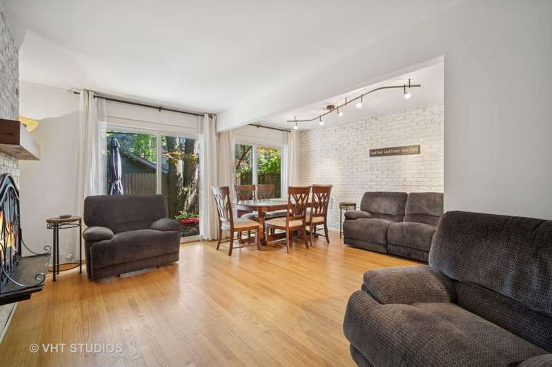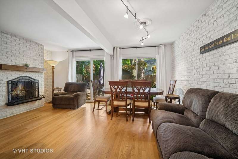 Beautiful 2 bed / 1 1/2 bath townhome in the ideal in-town Glencoe location! This stunning home offers cozy charm plus modern industrial look elements throughout including contemporary stair railings, hardwood floors, custom style moldings, and kettle black painted doors. The bright living room features two painted exposed brick walls, a wood-burning fireplace and a dining area, making it a nice space to entertain. The updated kitchen features a gorgeous stone backsplash, white cabinets, granite countertops, and all stainless steel appliances, including a Jenn Air stove with hood vent, and a Kitchen Aid dishwasher and disposal. You will also find an updated half bath on main floor with a square pedestal Kohler sink and beautiful round, arty mosaic mirror. Upstairs, you'll find 2 spacious bedrooms both with a painted exposed brick accent wall. There's also a gorgeous updated full bath that has a higher double sink in a cabinet vanity with a quartz marble-look top, a European rain shower with seat and handheld shower option, as well as heavy-duty decorator style grab bars. In addition, you will enjoy a great built-in desk with cabinets above, matching the style throughout, that is the perfect spot for your home office! Outside, your backyard is an awesome area where you can set up patio furniture, to relax and enjoy those lovely Summer and Fall evenings. There is an unfinished basement, that has just been freshly painted: ceiling, walls, and floor, and is currently set up as a rec room with children's play area, laundry area, and extra home office. It is great if you have two people working from home, as there is also the built-in desk upstairs. Walk or drive just few blocks to the upscale shops, theater, and restaurants in downtown Glencoe, Glencoe Beach, and the Metra train station. This home is sparkling clean, in move-in condition, and in the excellent New Trier school district! You do not want to miss this one. Hurry and schedule your tour today It won't last long! HOA - $388.00 a month includes water. Cats allowed-No Dogs.