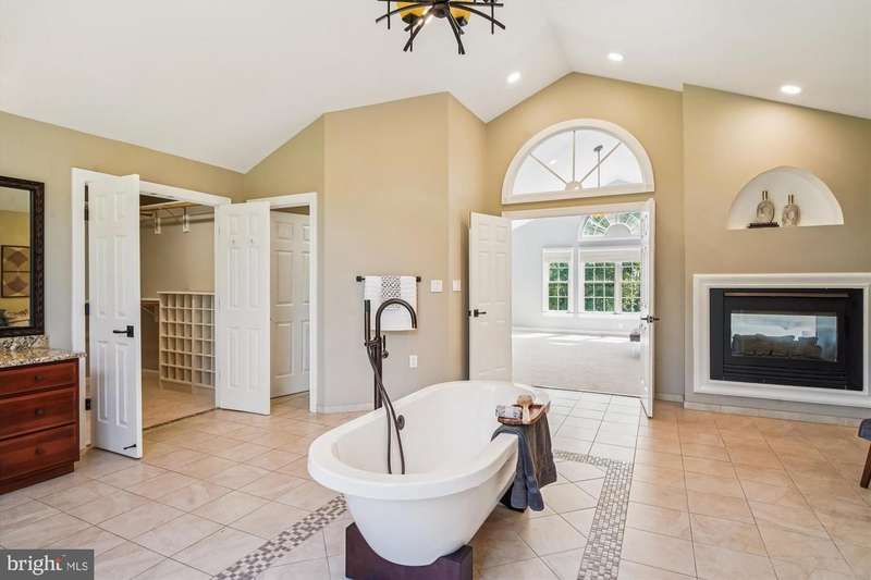 Nestled on a cul de sac and backing to Conservation land, this stately, brick 5 BR, 4.5 BA Colonial offers your own private retreat on a 2.7 acre beautifully serene lot which can be enjoyed from the new multi level deck complete with hot tub. Step into the grand two-story foyer and be greeted by Palladian accent windows, custom crown molding, and a gracefully curved central staircase. The main level includes a formal dining room with butler's pantry, a bright elegant living room, a private office, powder room, and a family room with a cozy gas fireplace framed by a charming brick accent surround. The heart of the home is the updated gourmet kitchen with new LVP tile floors, abundant white cabinets, granite counter tops, stainless steel appliances, large walk-in pantry and a massive center island for casual dining and conversation. Retreat to the spacious owner's suite with cathedral ceilings, a sitting room, two sided gas fireplace and the spa-inspired bath featuring a freestanding soaking tub, designer shower, dual vanities, and custom tile finishes. A His & Her walk-in closet with built-in organizers complete the suite. Three additional bedrooms, two full en-suite baths, and a convenient laundry room with new front loading washer/dryer round out the upper level. The fully finished, walk-out lower level offers an expansive recreation room with built in theater speakers, a fifth bedroom, a full bath, and a workout room/gym and ample storage space. The many updates include Roof (2019), new hot water heater , new Deck(2025), Solar panels (2020), refinished hardwood floors, new hardwood floors in family room, new carpet, fresh paint throughout, level 2 EV Charger-Ford Charge station pro and so much more. A prime Location for commuters, you are just 20 miles north of Washington, DC, with easy access to Route 200 (ICC), New Hampshire Ave, Georgia Ave. and minutes to Olney Village. Available VA Assumable Loan at 2.25% for qualified buyers.