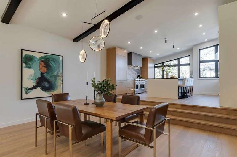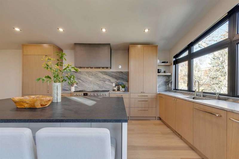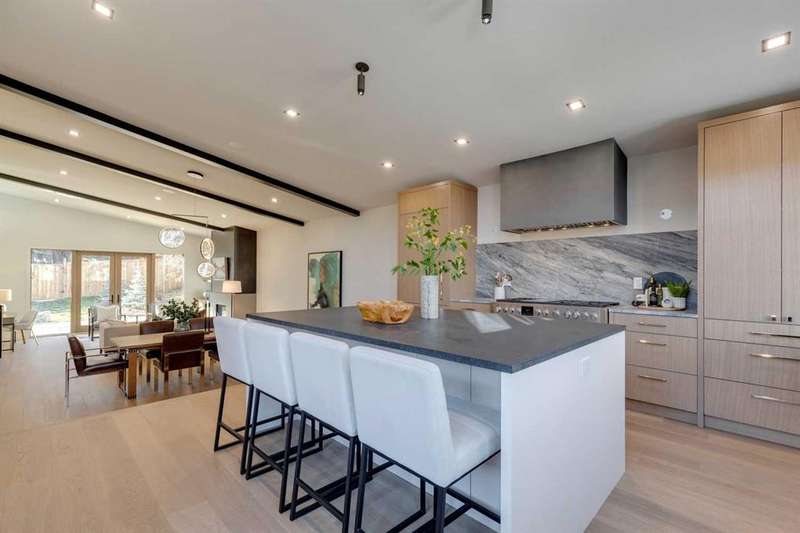 Welcome to 3423 23 Street NW, a mid century modern luxury residence, located in the highly desirable community of Charleswood. This newly built home offers over 3,400 sq. ft. of thoughtfully designed living space, showcasing an impressive blend of architectural sophistication, premium natural materials and state-of-the-art smart home features. The exterior makes an immediate statement with real brick, NewTech wood composite cladding, timber soffits and smooth stucco, creating a refined and low-maintenance façade that complements the mature, tree-lined street. Step inside to a foyer featuring white oak wall paneling and Limestone Bluestone pavers, setting the tone for the elegance carried throughout the home. The main level centers around a stunning chef-inspired kitchen equipped with a 48” Fulgor range, hoodfan & dishwasher, 36" Thermador fridge, all top of the line appliances. The perimeter counters are Temptation Quartzite w/leather finish, the island countertop - absolute Black granite w/brushed finish create a dramatic focal point, while custom white oak and painted cabinetry offer generous storage. The adjacent living and dining areas provide a seamless open-concept layout, highlighted by a gas fireplace with a Concrete Quartz surround, custom steel detailing, white oak millwork and expansive row of patio doors & windows that bathe the space in natural light. The upper level is anchored by an exceptional primary suite designed as a true retreat. The ensuite features striking “Fusion Wow” Quartzite, micro cement walls and ceilings in the shower, Riobel fixtures, a rain shower, freestanding tub and heated porcelain floors. A home office is adjacent to the primary bedroom. Two additional spacious bedrooms share a stylish Jack and Jill bathroom with Concrete Quartz finishes and glazed porcelain tile. A beautifully designed laundry room with LG large-capacity appliances, stone counters and built-in drainage adds convenience and functionality. The fully developed lower level offers a versatile media & recreation area with custom oak paneling, a fourth bathroom with heated floors and ample storage. This space is ideal for family living or entertaining guests. Comfort and convenience are elevated with integrated smart home technology, including Lutron lighting control, SONOS built-in speakers across five zones, HIK vision exterior security cameras, Wi-Fi controlled heated floors, multi-zoned furnace and central air conditioning system for year-round climate control. A heated double garage with hydronic in-floor heating and EV charging r-in provides both practicality and modern convenience. Every element of this home reflects careful craftsmanship, timeless design and luxurious functionality. Located on a quiet street just moments from parks, schools, the University of Calgary and urban amenities, this extraordinary residence delivers the perfect combination of elegance, innovation and everyday comfort in one of Calgary’s most sought-after neighbourhoods.