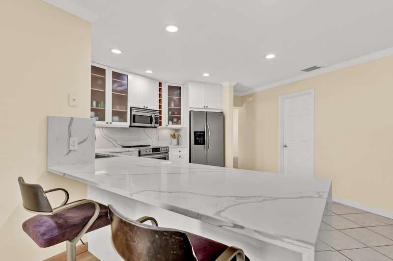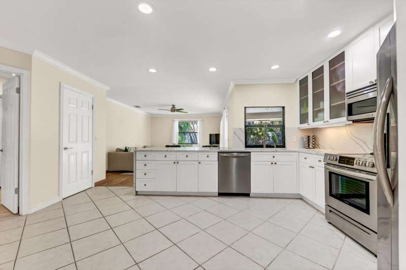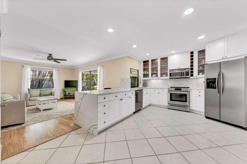 Welcome to the charming Village of Tequesta! This home perfectly blends small-town character with an unbeatable location. Inside, youll find 3 spacious bedrooms, 2 full bathrooms, and a versatile den that can be used as an office or easily converted into a fourth bedroom. The split floor plan offers two separate living areas, giving everyone space to relax and enjoy. The newly renovated kitchen is light, bright, and open--featuring beautiful quartz countertops, newer stainless steel appliances, and a seamless flow into the dining and living areas. The main living room boasts vaulted ceilings and luxury vinyl flooring, creating a modern yet comfortable atmosphere. SEE MORE REMARKS...