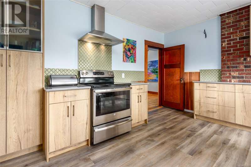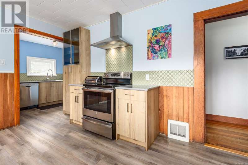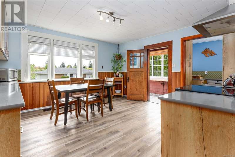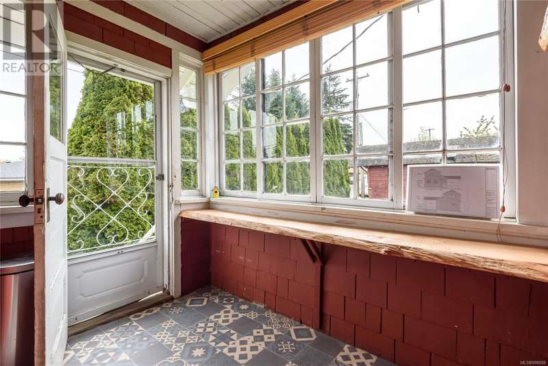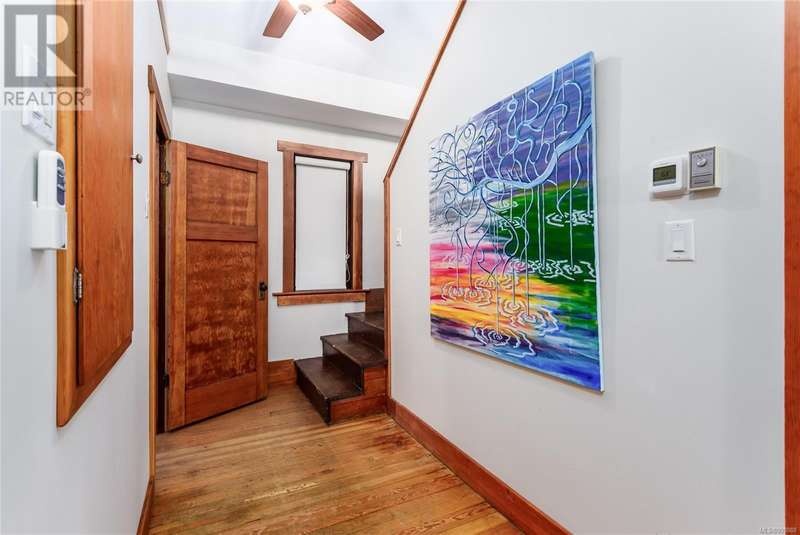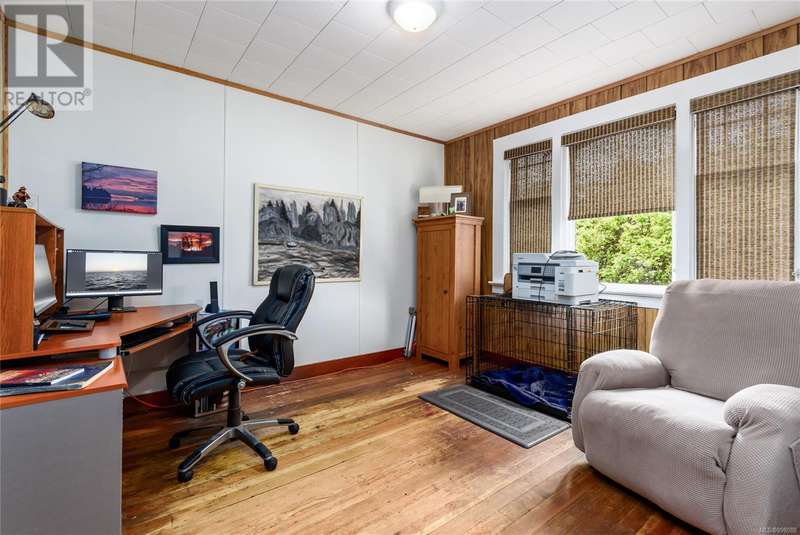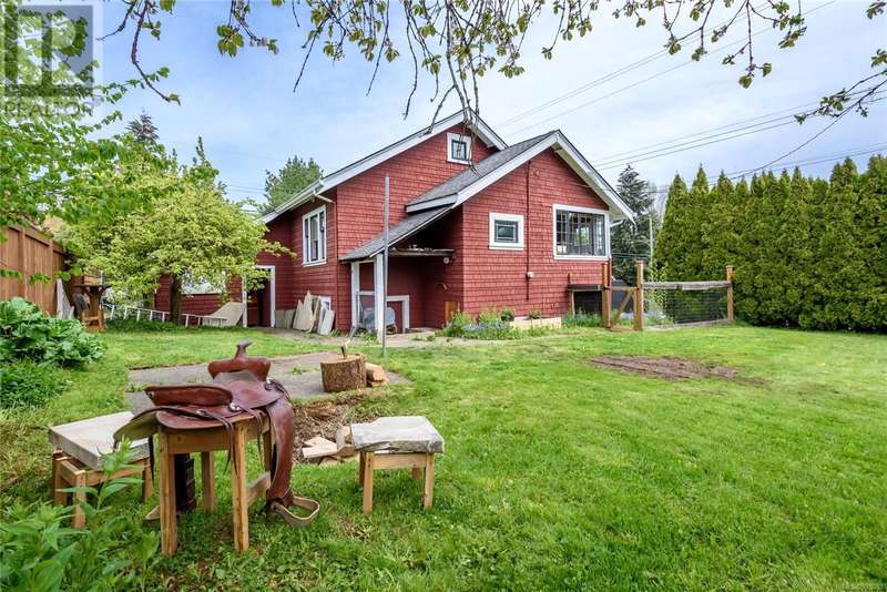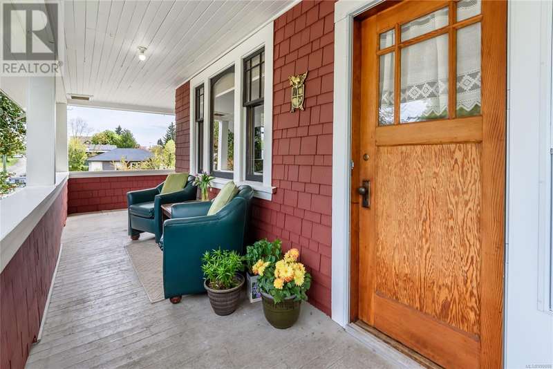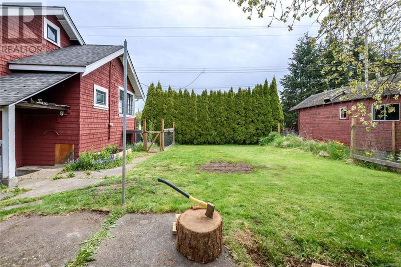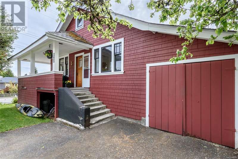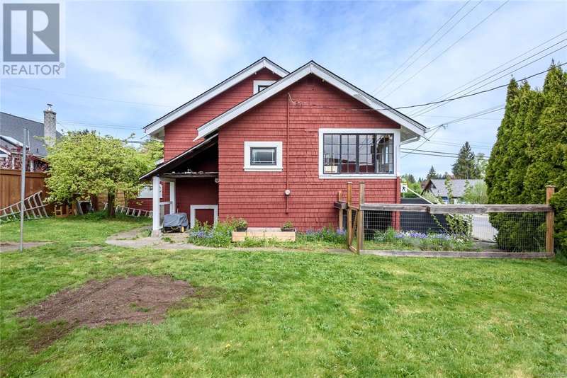 A Rare Cumberland Gem – Timeless Charm Meets Future Potential This is a truly exceptional opportunity in the heart of the beloved Village of Cumberland—just three blocks from downtown, nestled on a prominent corner lot with coveted R1-A zoning. Built in 1936, this beautifully preserved Craftsman home is brimming with character and untapped potential. Lovingly maintained by the same owners for over 30 years, it showcases thoughtful upgrades alongside its original charm. The main residence welcomes you with rich fir woodwork, an abundance of natural light, and spacious living areas. The newly updated kitchen features quartz countertops, a bonus kitchenette, and flows seamlessly into an inviting sunporch—perfect for morning coffee or quiet reading. The main floor offers two comfortable bedrooms and a freshly renovated bathroom, while the upper loft and den provide two additional bedrooms and a rough-in for a second bath. Outdoors, the magic continues. The private, sun-drenched backyard boasts mature pear trees, a Bing cherry, a cozy fire pit. Out front is a covered verandas that exude classic charm. A standout feature is the “Bridal Cabin” at the rear of the lot—dating back to the 1890s—now set on a new foundation with septic tied in and drainage in place, ready to be transformed into a studio, guest suite, or income-generating space. The dry, unfinished basement adds even more utility, ideal for laundry, storage, or a workshop. This one-of-a-kind property blends heritage beauty with zoning flexibility, offering endless lifestyle and investment possibilities—all within a short stroll to the vibrant heart of Cumberland. Call Catherine today to book a showing at 250-937-9856 (id:58403)