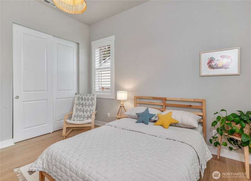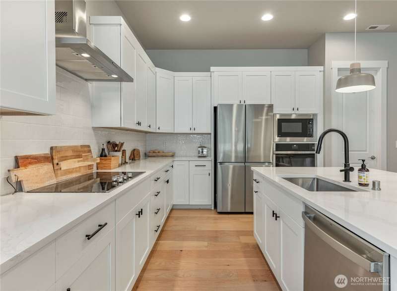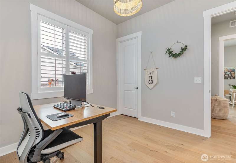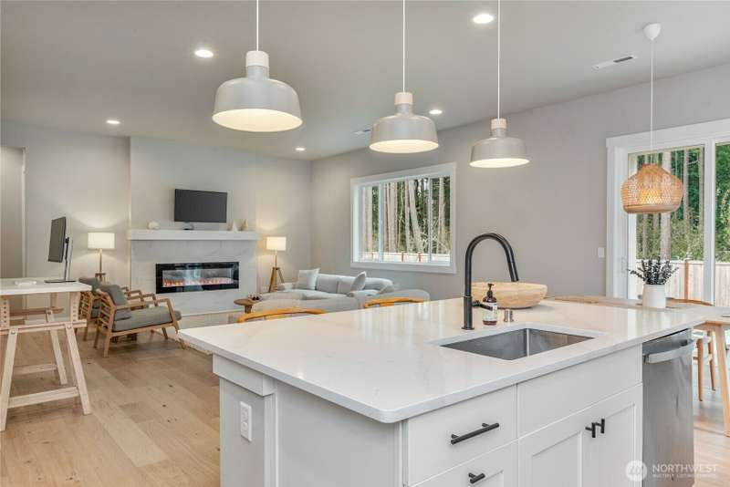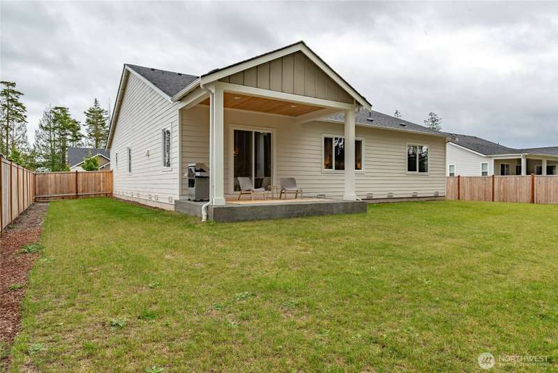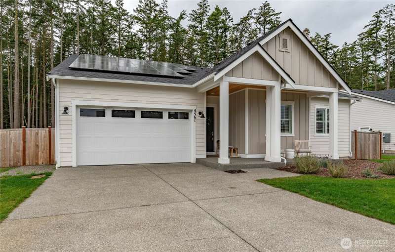 This stunning 4-bedroom one level Craftsman on over ¼ acre lot is a dream come true. An open concept floor plan with 10-foot ceilings offers a living room with an electric fireplace, gourmet kitchen, oversized center island, double ovens and a spacious walk-in pantry. The oversized primary suite boasts a large private walk-in shower, double sinks and a spacious closet. 3 more bedrooms, laundry room and 1.75 baths complete this thoughtfully designed build. Fenced backyard and covered patio. Home is under warranty. Owners added solar panels, EV charger, automatic garage door opener, all new shutters in the bedrooms and Belgian linen roman shades in the primary suite, upgraded engineered oak hardwood flooring throughout.
