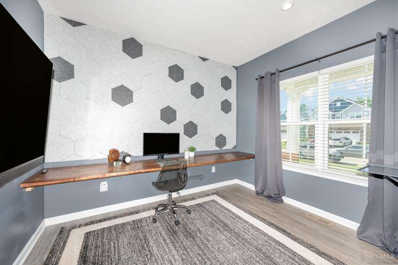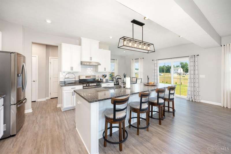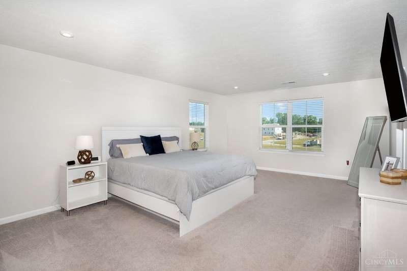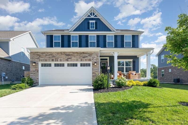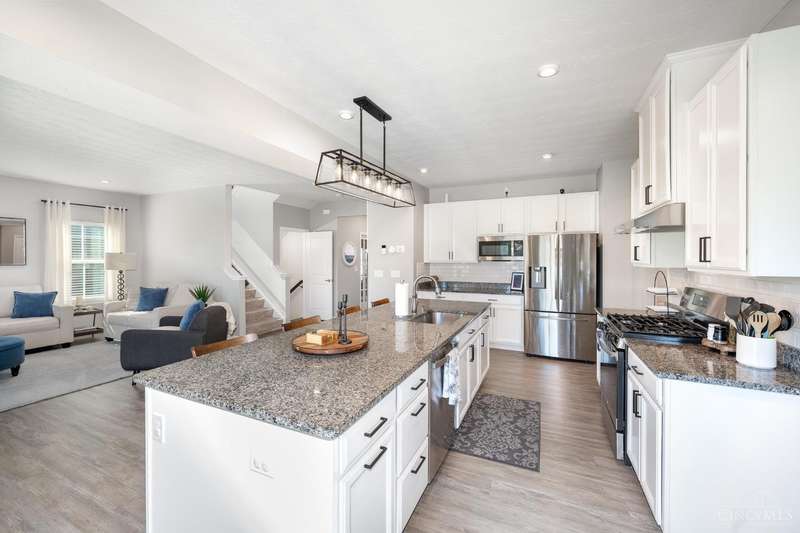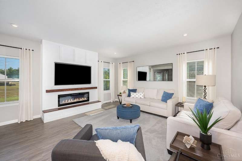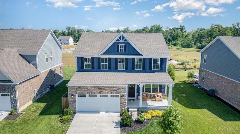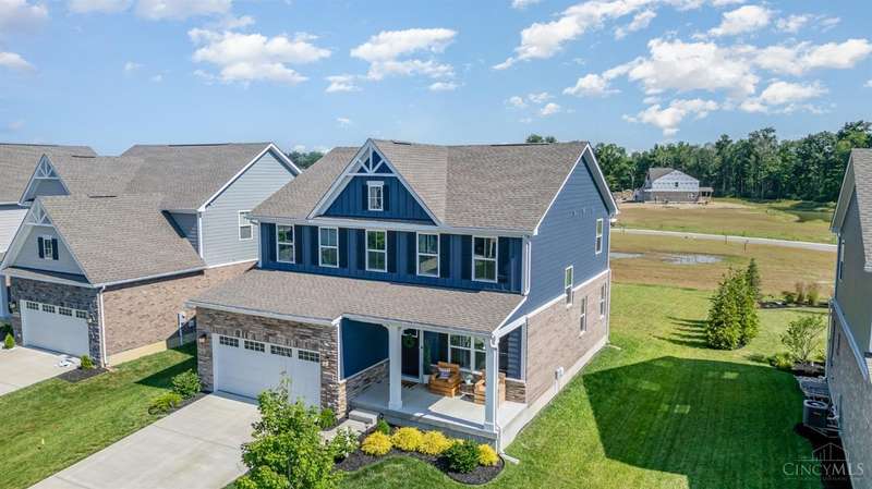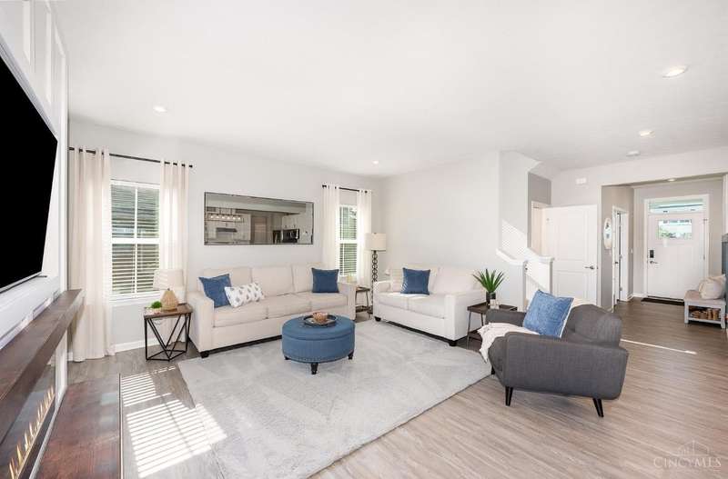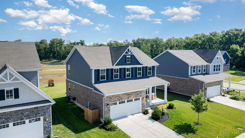 Nestled in Winding Creek, this move-in-ready Columbia home blends modern style and comfort. Features include an open-concept layout with high ceilings, custom trim, upgraded flooring, and designer lighting. The gourmet kitchen boasts stainless steel appliances, a large island, and a walk-in pantry. The living area has a custom fireplace, while the primary suite offers a walk-in closet and spa-like bathroom with dual vanities and a walk-in shower. Three additional bedrooms, a study with French doors, and a finished basement with a rec room and full bathroom provide ample space. Enjoy HOA amenities like two pools, walking trails, pocket parks, a clubhouse, and fitness center. Conveniently located near shopping, dining, parks, and I-675/I-75. Waynesville SD.