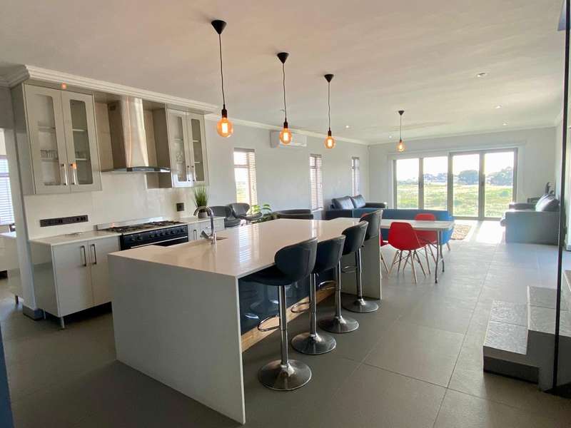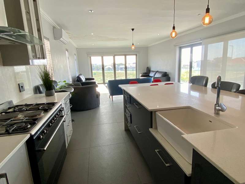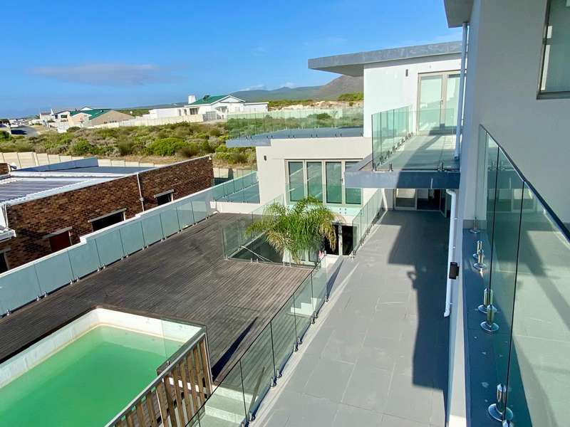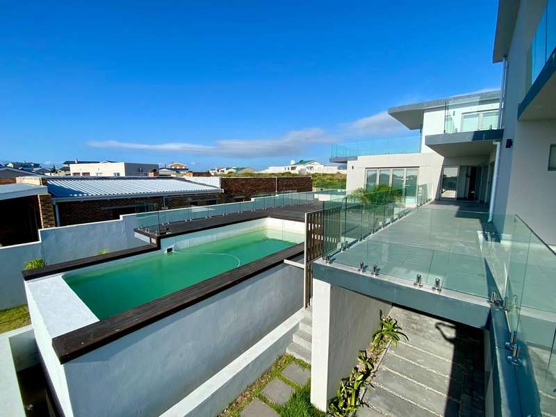 This ultra-modern mansion in the heart of Gansbaai is a masterpiece of contemporary architecture, offering luxurious facilities and breathtaking views. Designed with seamless indoor-outdoor living in mind, the property features expansive sliding doors that open onto a wooden deck, an outdoor entertainment area, and a sparkling swimming pool—perfect for watching the sun set over Walker Bay. With seven en-suite bedrooms spread across three levels, this home provides ample space for large families or guests. High-end finishes and thoughtfully designed living areas, including a cinema room for cozy evenings, make this a one-of-a-kind residence in a sought-after coastal destination. A strategically positioned triple-story home, this property is more than just a luxurious residence—it presents a unique investment opportunity. Situated in the fast-growing Perlemoenbaai suburb, close to Gansbaai’s CBD and main routes leading to Hermanus, it is an ideal location for a high-end guesthouse or boutique B&B. The ground level features two en-suite bedrooms, a spacious entertainment/recreation area, and a double automated garage. The second level offers three additional en-suite bedrooms, two expansive open-plan living areas, a well-appointed kitchen with a scullery, and a versatile recreation room that could serve as a conference space, office, or private theatre. Large glass stacker doors create a natural flow from the living areas and bedrooms to the outdoor entertainment space, where guests can relax by the pool and take in the panoramic ocean views. The third level is dedicated to two grand master suites, each with a private lounge or office space, and an exclusive patio with its own entertainment area. This luxurious home is surrounded by the rich natural beauty of the Overstrand region, renowned for its whale-watching, shark cage diving, hiking trails, and vibrant marine life. Whether as a dream home or a thriving hospitality business, this extraordinary property offers an unmatched lifestyle in one of South Africa’s premier coastal locations. Book a viewing today!