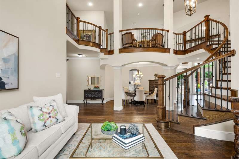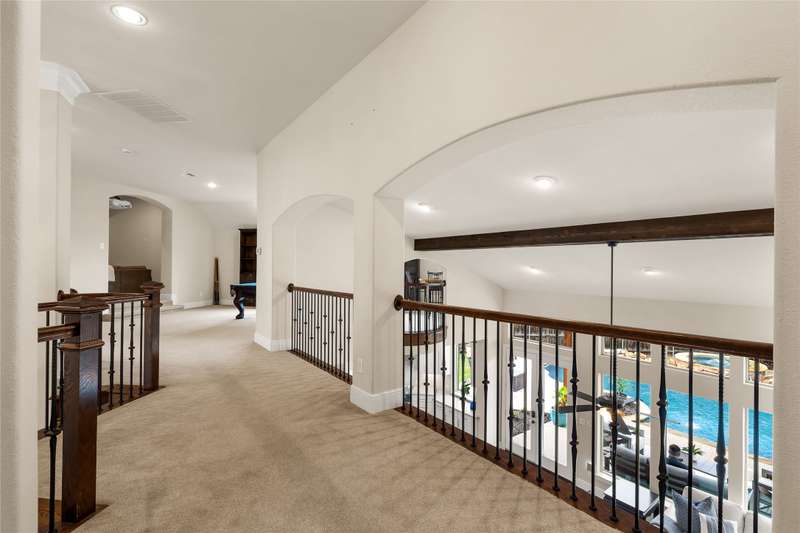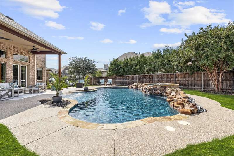 Discover timeless elegance in this stunning 5-bedroom custom home nestled within the exclusive, 24-hour guard-gated community of the Hills of Kingwood. With over 4,800 square feet of beautifully curated living space, every detail has been designed for both effortless entertaining and the warmth of everyday living. Step inside to soaring ceilings and walls of windows that bathe the home in natural light, creating a bright, inviting atmosphere from the moment you enter. The chefs kitchen is a showpiece, featuring a 6-burner gas range, side-by-side large-capacity refrigerator and freezer, and a striking quartz island thats as functional as it is beautiful the perfect gathering spot for family and friends. Hand-scraped hardwoods flow gracefully through the main level, adding warmth and character throughout. The first-floor primary suite is a serene retreat, offering a spa-like bath with dual vanities, a stand-alone soaking tub, and a spacious walk-in closet. A secondary bedroom and full bath downstairs provide flexibility for guests, a nursery, or a private home office. Upstairs, youll find three additional bedrooms, a game room, and a dedicated media room spaces made for connection, relaxation, and memory-making. Step outside to experience outdoor living at its most enchanting. A custom, heated lagoon-style pool with spa, waterfall, swim jets, and beach entry creates a resort-worthy oasis right in your backyard. Its the perfect backdrop for peaceful mornings, lively gatherings, or evenings under the stars.Additional features include thicker second-level subflooring for added quiet, a brand-new roof (2025), and thoughtful custom touches carried through every stage of the homes design and construction.Perfectly positioned near The Star, Legacy West, Dallas North Tollway, and Highway 121, this home combines luxury, comfort, and location in a way that feels truly extraordinary.