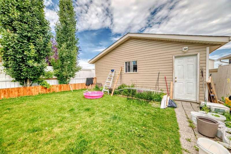 Great location of this well maintained home, a few blocks from playground, bus stop, schools and shops, approximately 5 minutes drive to the c-train station and malls. A newer concrete walk pad leads you to the home, and as you get in, you'll be greeted of its nice layout with laminate floorings all through out the main level. The kitchen is equipped with stainless appliances, this includes a newer DISHWASHER bought last 2023, basement WASHING MACHINE bought last 2024, updated WINDOW BLINDS in Living Room and Master Bedroom which is remotely operated. In the Upper Level, It offers 3 good sized bed rooms and 1 full bath room with jetted tub in (as-is condition), also with laminate flooring through out. ROOFS and SIDINGS was replaced last 2023. In the FULLY DEVELOPED basement, it offers a family room, 1 bed room and a 3 pcs bathroom. At the back yard, you will be delighted by its huge COVERED DECK that protects you from rain or snow while cooking and also its OVER SIZED Double Detached Garage with access from the graveled back lane. Note: Seller has 2 small cute dogs but be remove during showings. So What you're waiting? Call your favorite realtor now and book your showing!!